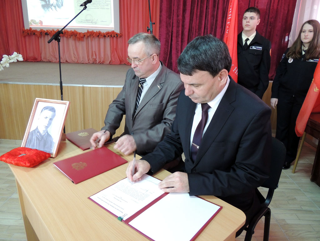 Начальник военно-мемориальной службы Балтийского флота Министерства обороны Российской Федерации Олег Бобровский и руководитель отделения Посольства Республики Беларусь в Калининграде Василий Горбатенко подписали акт передачи государственной награды. Торжественная церемония прошла при участии Поискового Движения России и Регионального отделения РВИО в Калининградской области, которое возглавляет адмирал Владимир Егоров.