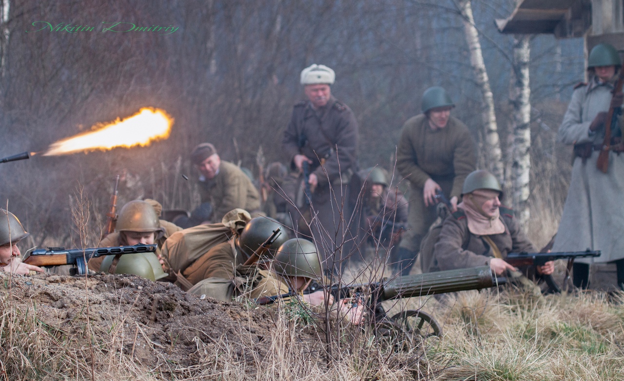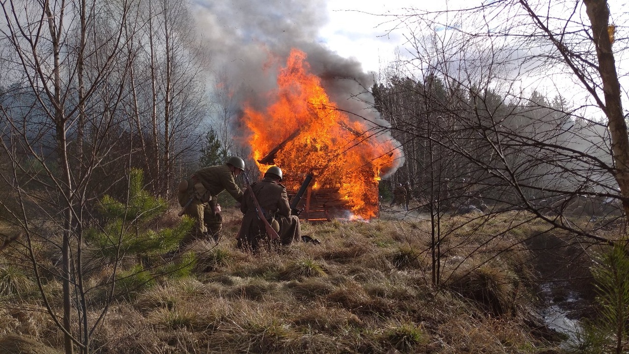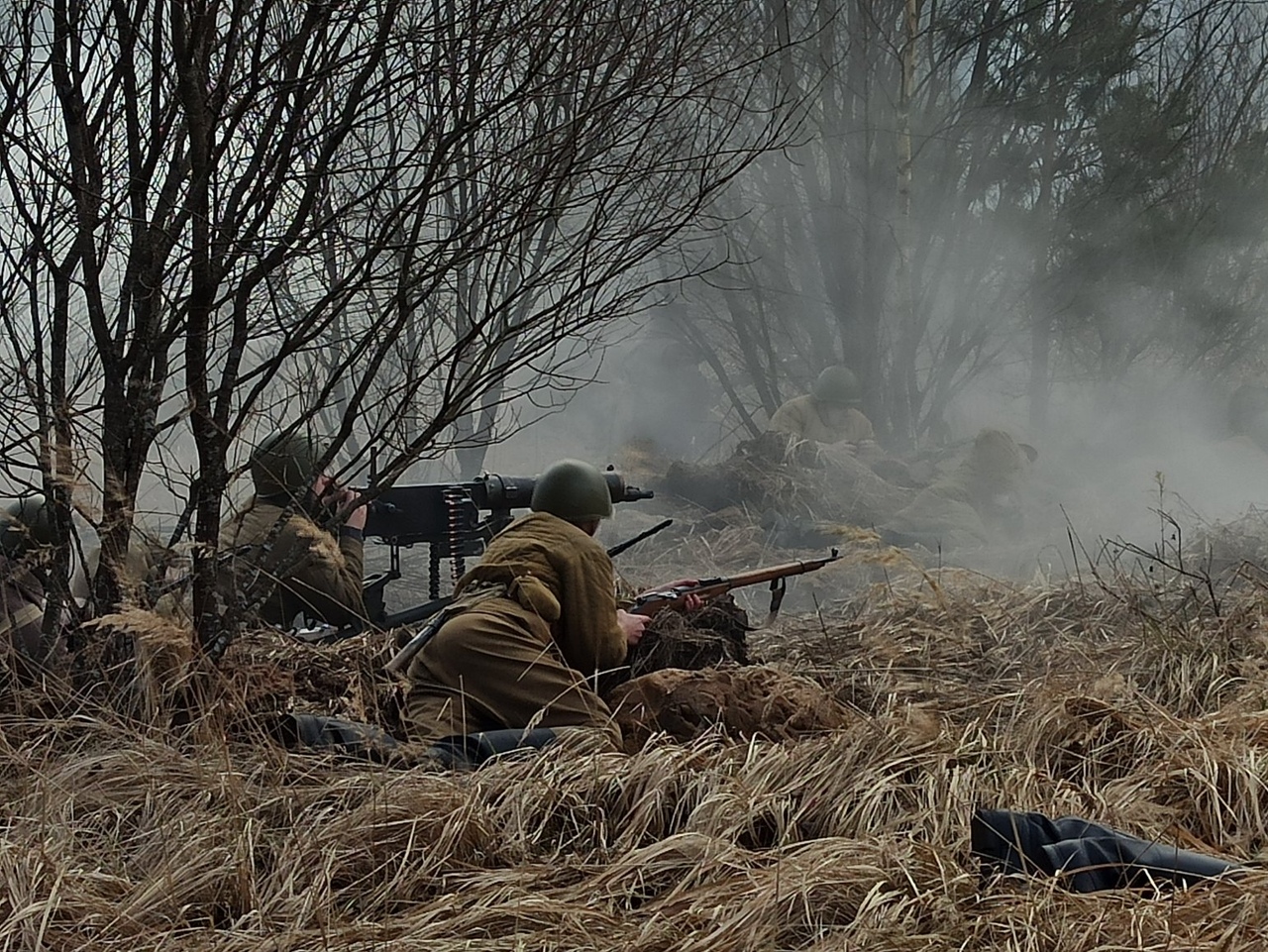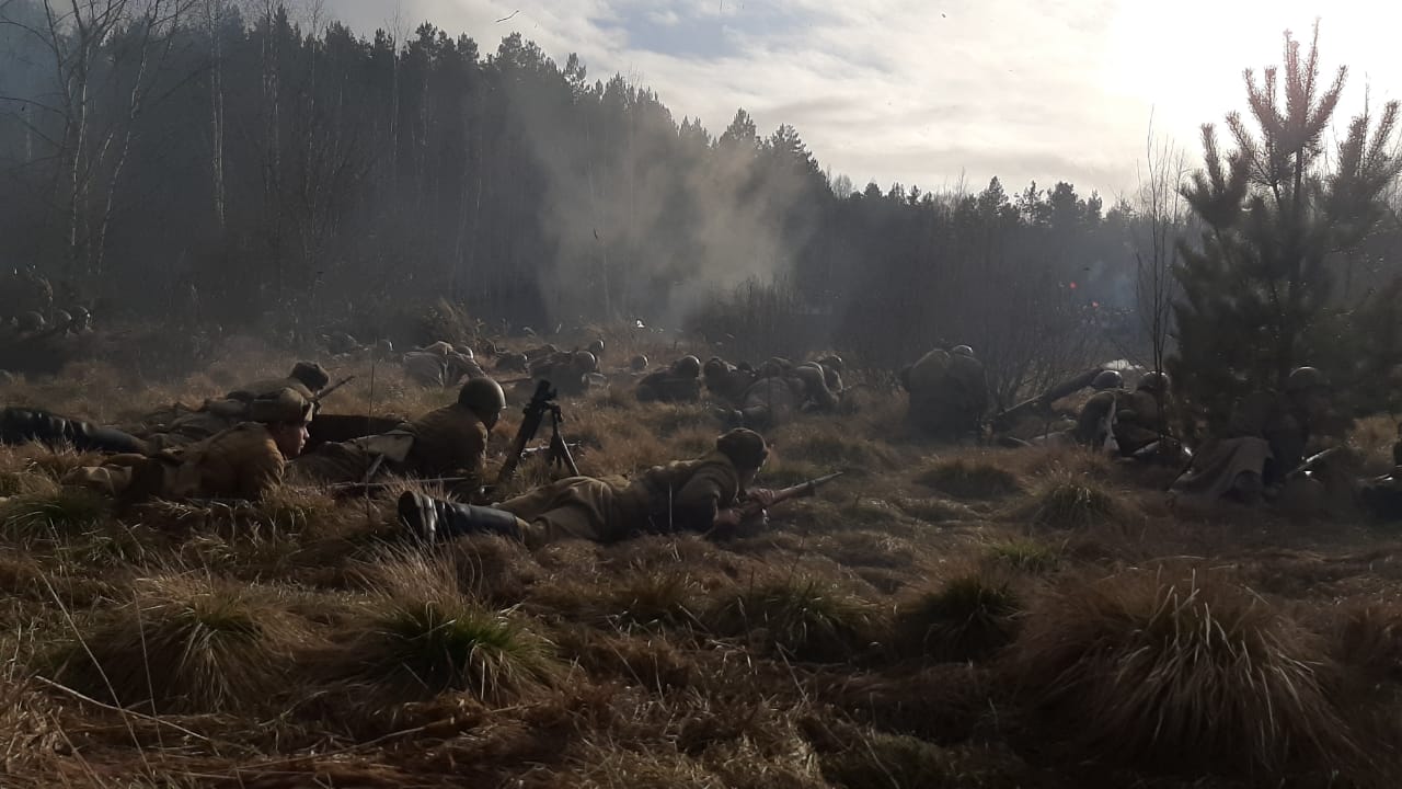 Реконструкторы приехали на площадку в субботу и ночь перед фестивалем провели в блиндажах, вживаясь в военную атмосферу. Основой для реконструкции стали события февраля 1943 года, когда район был освобожден от оккупации. В этом году организаторы достроили на площадке декорации домов, чтобы показать события не только на окраине Демянска, но и в одной из окрестных деревень. Сценарий боя состоял из трех этапов, он продолжался около часа. Первый - бой за первую деревню, дальше - отступление вражеских войск и бой за окраину Демянска.