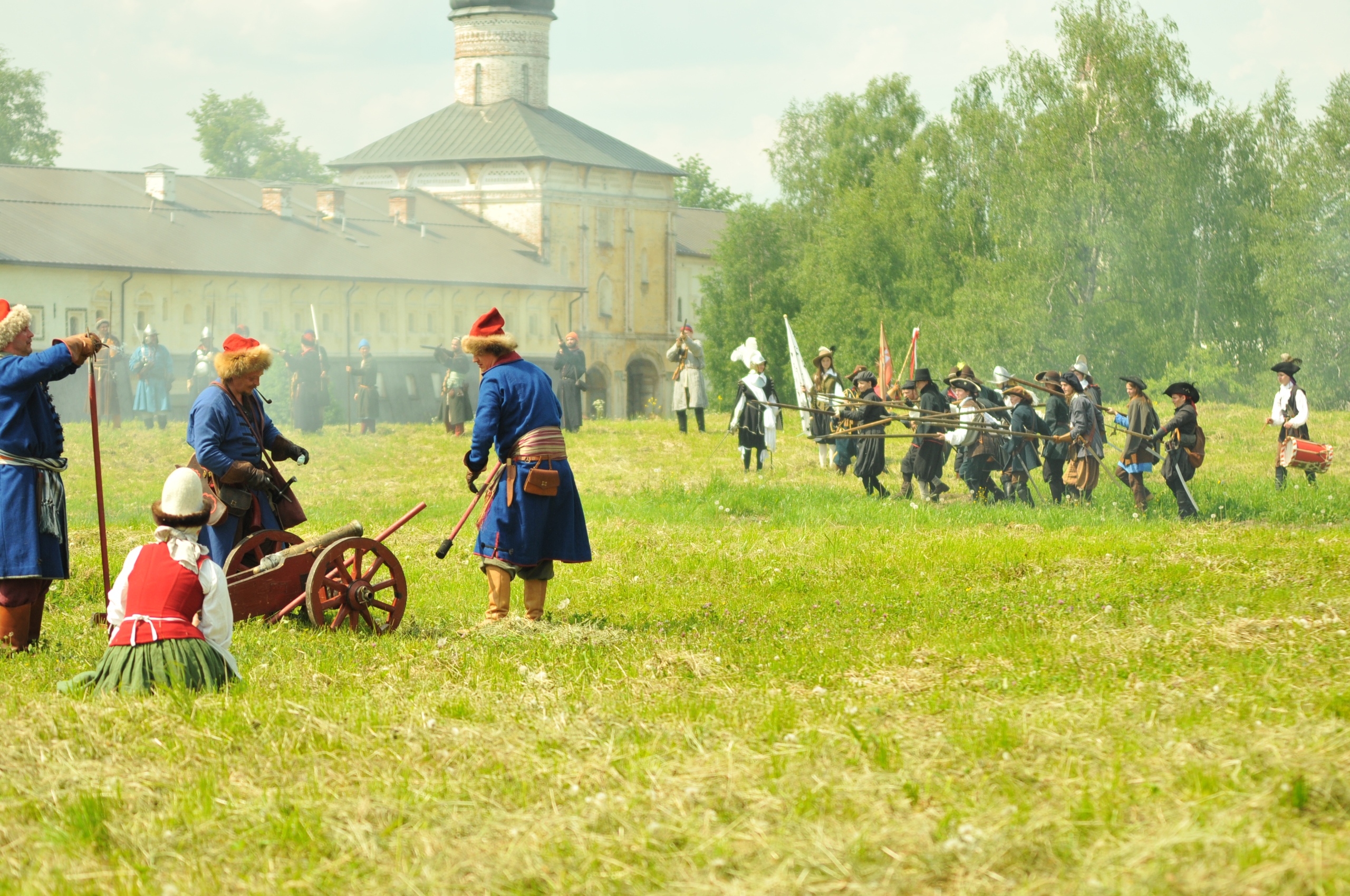 Главным событием фестиваля стали постановки военных действий. Реконструкторы показали зрителям эпизоды Кирилло-Белозерской осады, когда с 1612 по 1618 годы в Кирилловской обители шла защита монастыря от польско-литовских интервентов.