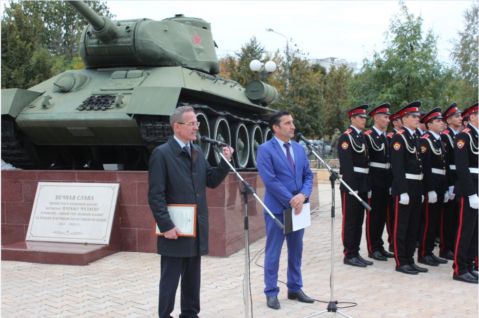 Сегодня на территории Мемориального комплекса Славы им А.А. Кадырова, в день празднования 200-летия города Грозный, состоялось торжественное открытие бронзового бюста герою Великой Отечественной войны, офицеру Советской Армии, отважному танкисту Маташу Хамзатхановичу Мазаеву. Скульптура стала подарком от Российского военно-исторического общества. Она изготовлена Денисом Стритовичем по проекту Советника Председателя РВИО Ростислава Мединского.
