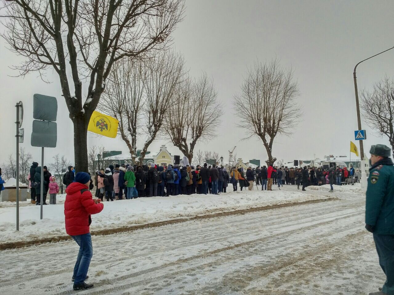 Торжественная церемония открытия завершилась возложением цветов и прохождением торжественным маршем личного состава Костромского гарнизона, курсантов Военной академии войск радиационной, химической и биологической защиты имени Маршала Советского Союза С.К.Тимошенко.