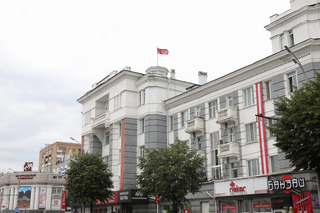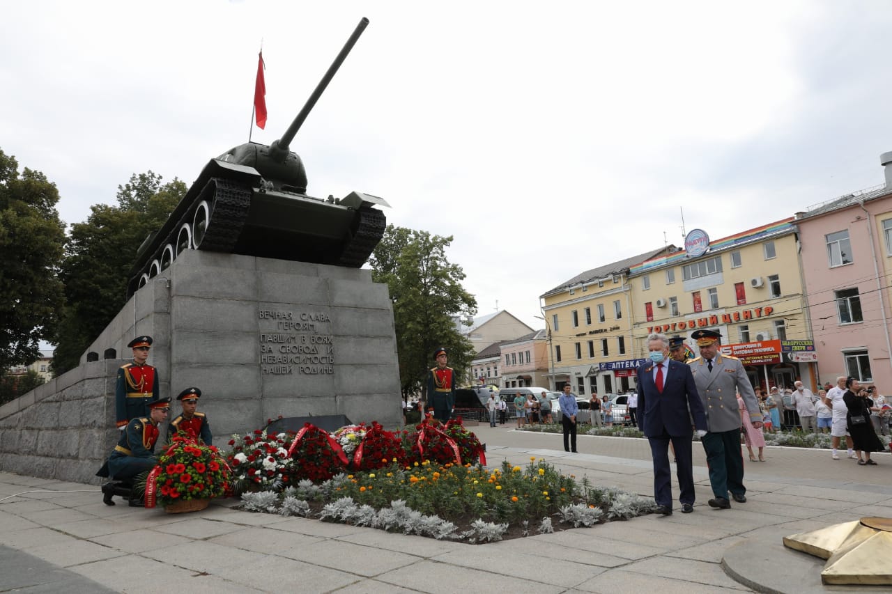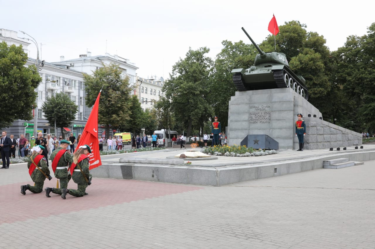 По традиции в честь подвига советских воинов над зданием дома №5 на площади Мира была водружена копия Красного Знамени Победы, которое 5 августа 1943 года подняли над городом воины-разведчики Василий Образцов и Иван Санько.