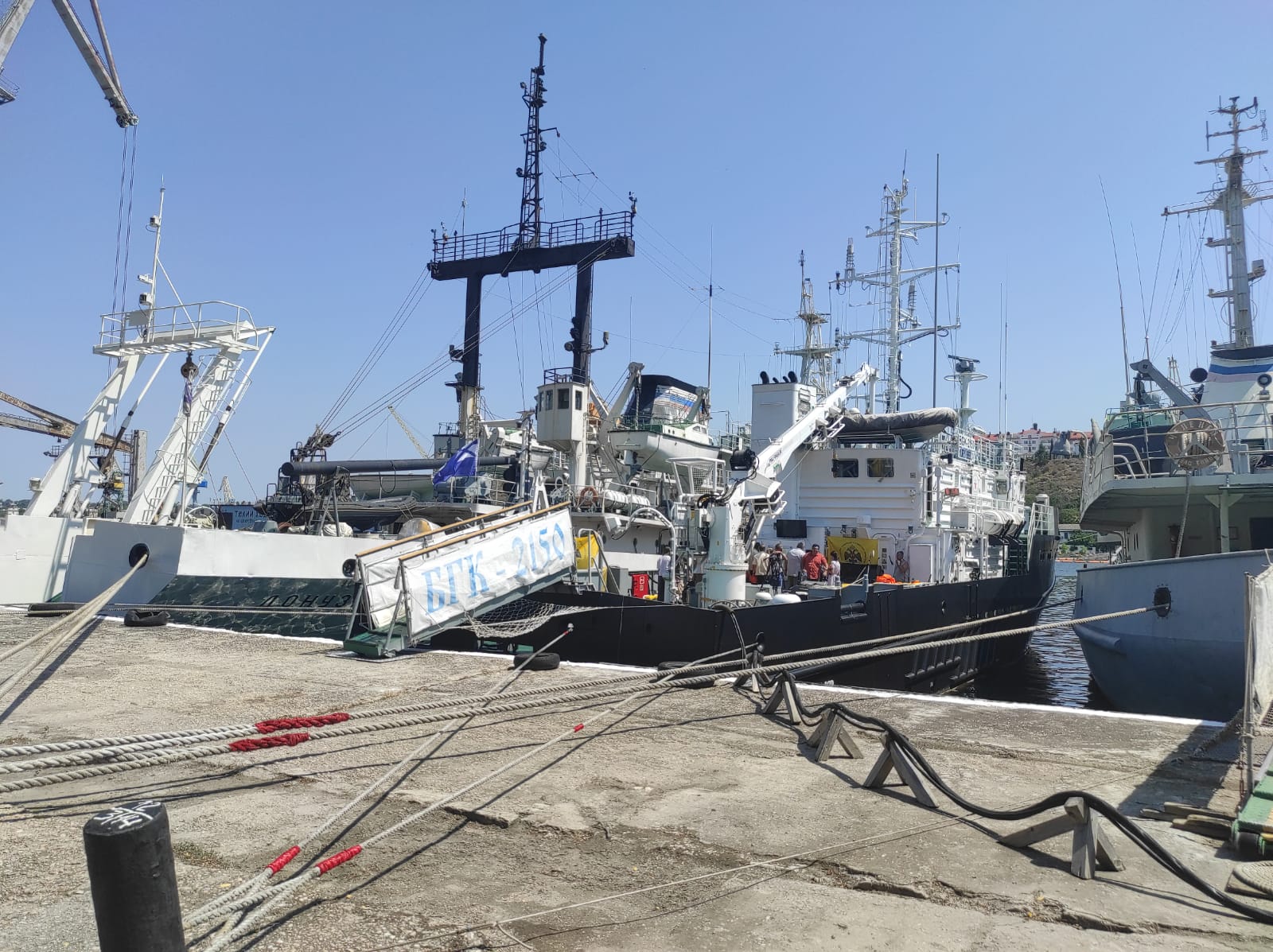 Сегодня Командующий Черноморским флотом России, адмирал Игорь Осипов и заместитель губернатора Севастополя Игорь Михеев посетили гидрографический катер "Юрий Белов", на котором проходит Поисковая экспедиция Российского военной-исторического общества (РВИО) по обнаружению санитарных транспортных судов "Белосток" и "Ленин", погибших в годы Великой Отечественной войны.