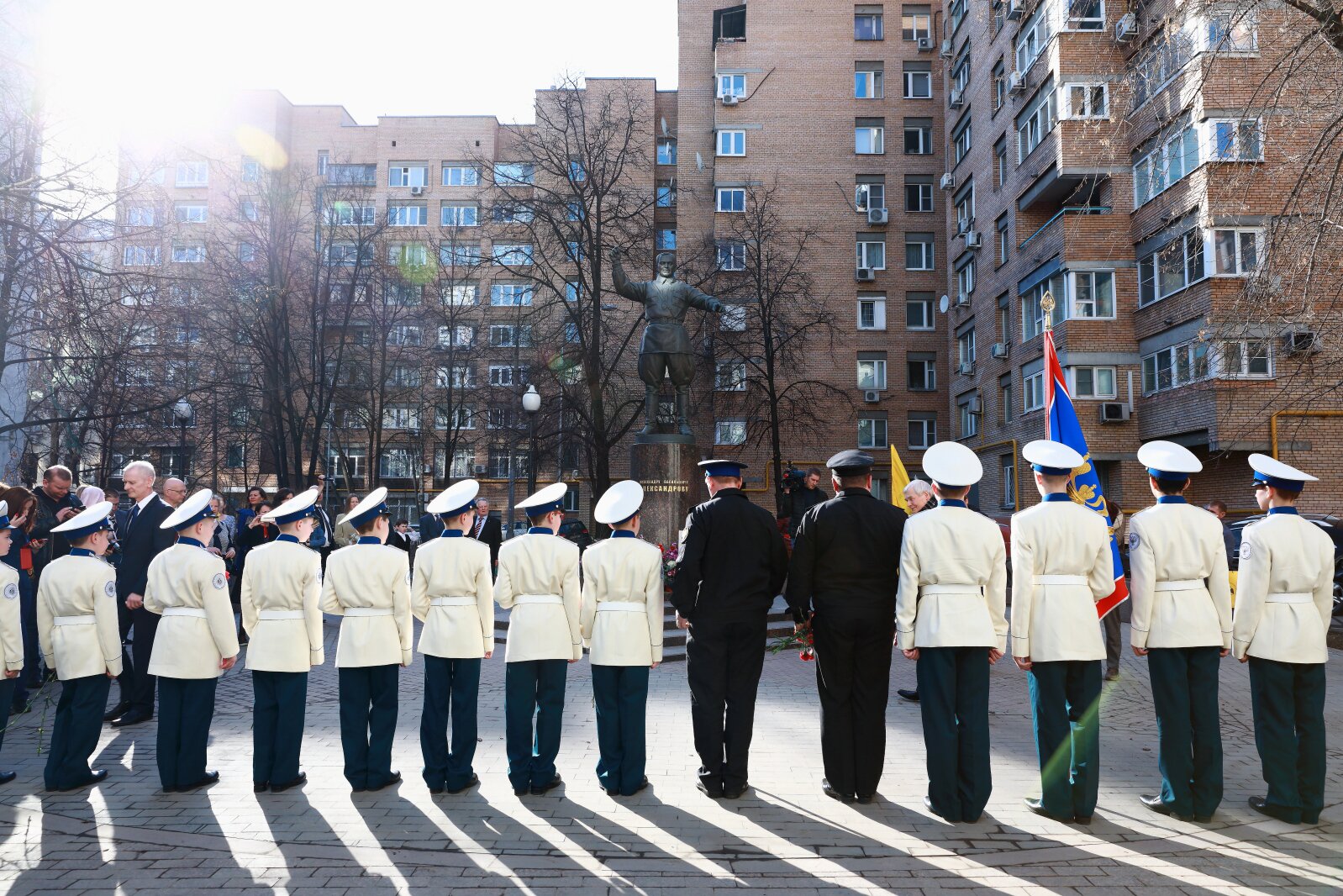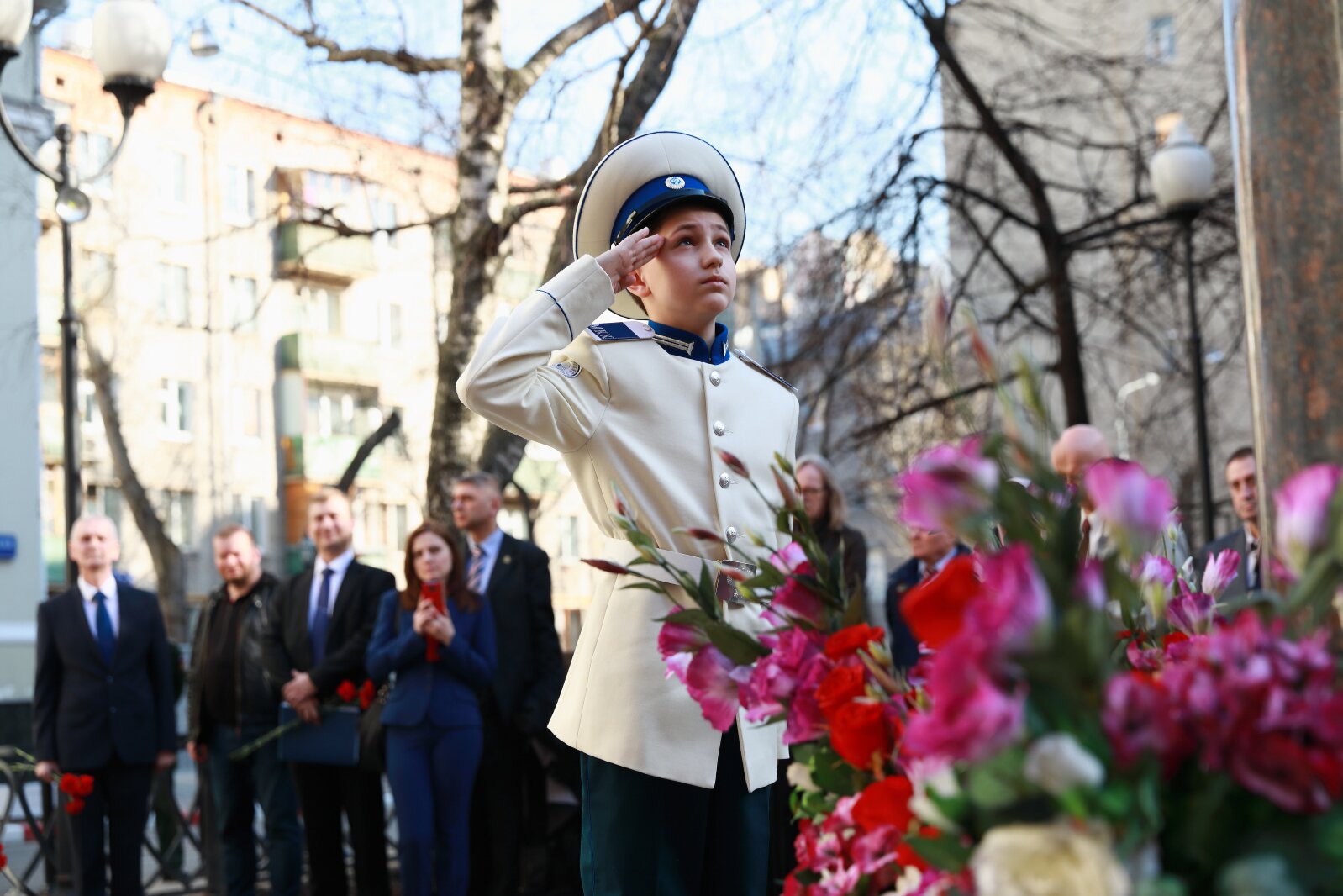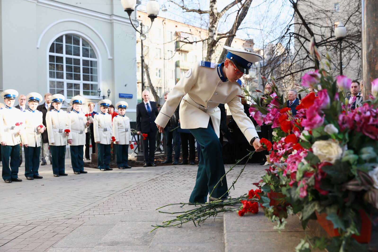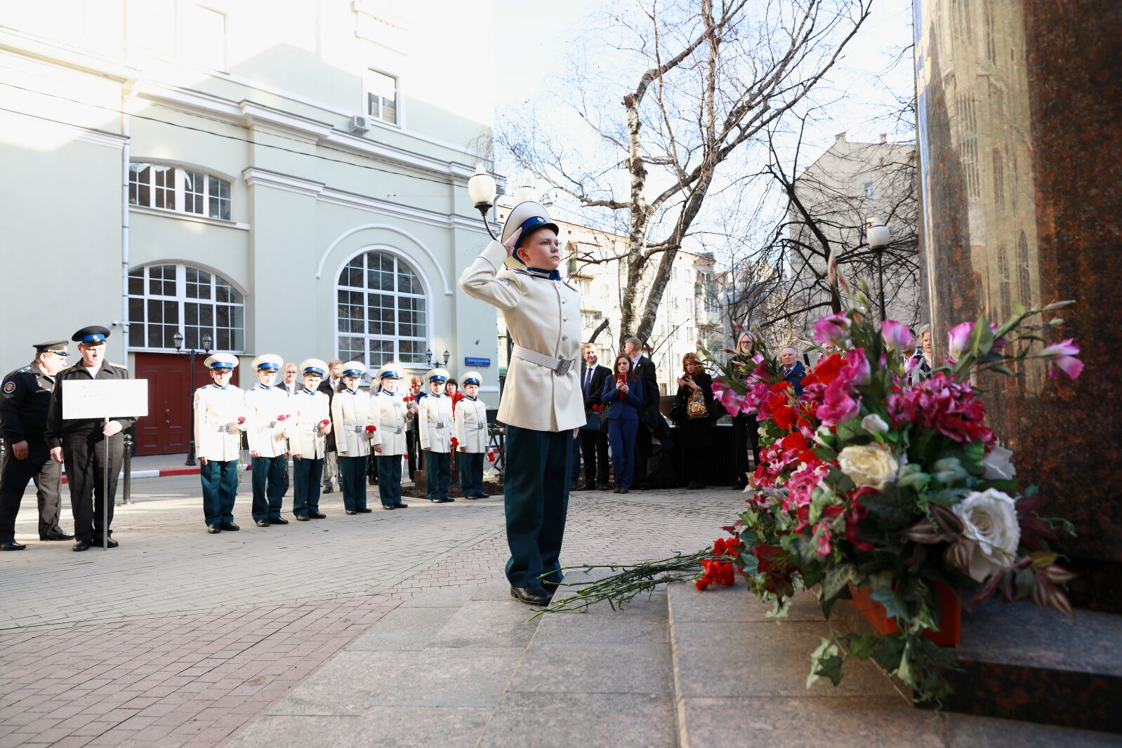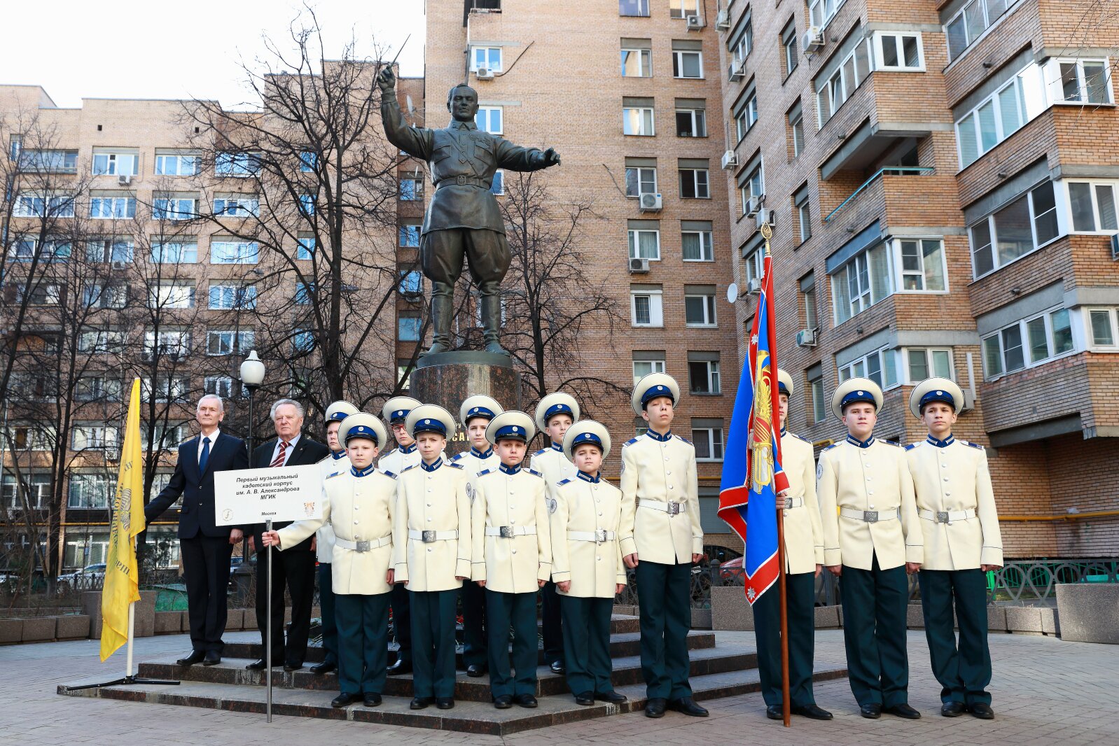 После церемонии посвящения в кадеты воспитанники Первого Музыкального кадетского корпуса им. А.В. Александрова возложили цветы к памятнику Народному артисту СССР, генерал-майору Александру Васильевичу Александрову, чьё имя вписано золотыми буквами в историю Отечества. Напомним, 13 апреля 2018 года исполнилось 135-лет со дня рождения этого великого композитора.