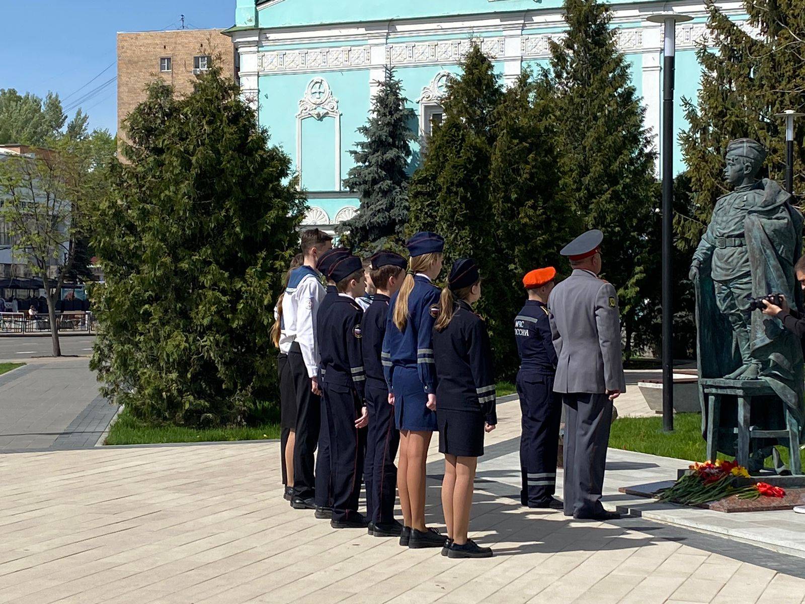 В течение всего дня цветы к Памятнику «Сынам полков» приносят жители Курска – ветераны боевых действий, школьники, юнармейцы, воспитанники молодежных патриотических клубов.