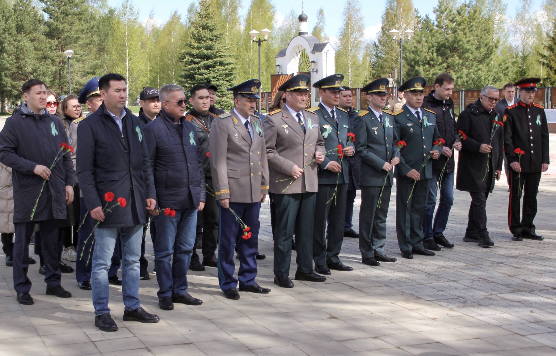 Визит начался с возложения цветов к Мемориальному комплексу воинам-казахстанцам 100-й и 101-й отдельных стрелковых бригад, погибшим на Ржевском плацдарме.