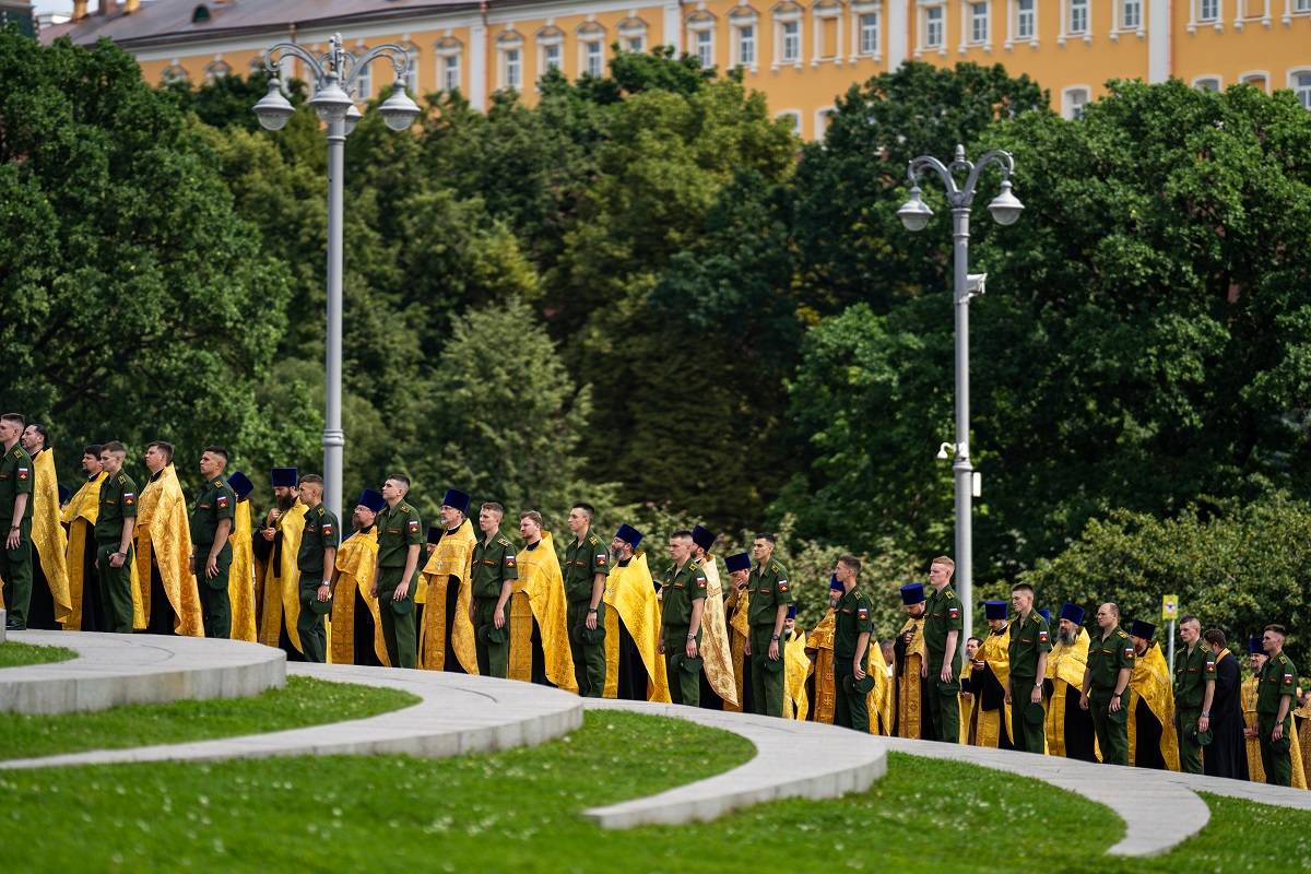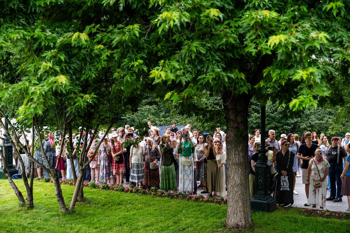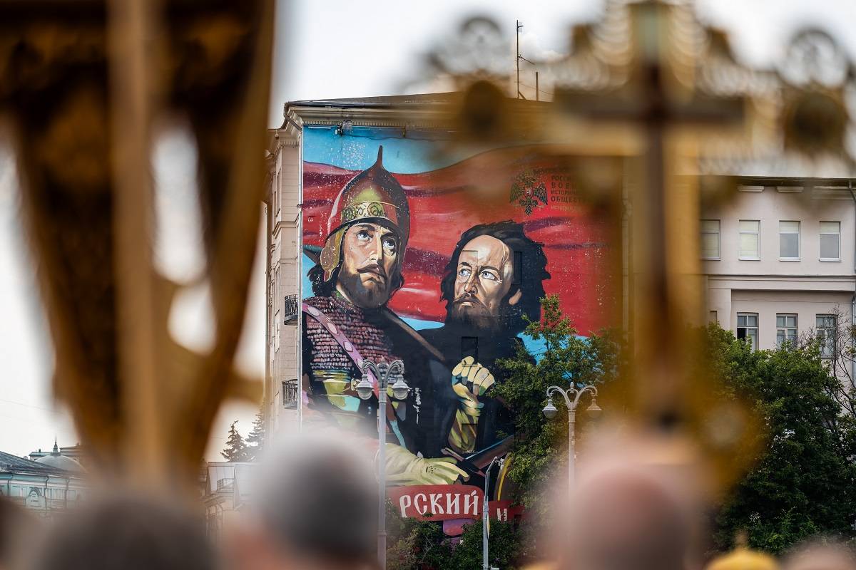 В крестном ходе и молебне у памятника приняли участие архиереи и духовенство, сослужившие Его Святейшеству за Литургией в Патриаршем Успенском соборе. На крестном ходе пел молодежный хор соборов Московского Кремля под управлением А.М.Харьковой.