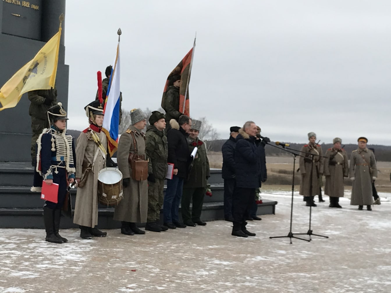Текст Манифеста зачитали участники клубов военно-исторической реконструкции, которые были по форме разных периодов - Отечественной войны 1812 года и Первой мировой, а также современные военнослужащие Российской Армии. Такой подход символизировал преемственность поколений - от 19 века до нашего времени.