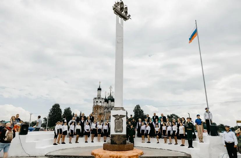 Место празднования выбрано не случайно - трехцветный российский флаг впервые был поднят на "первенце" русского военно-морского флота - корабле "Орел". Село расположено на реке Оке, которая в то время была одним из важнейших торговых путей для молодого Московского государства.