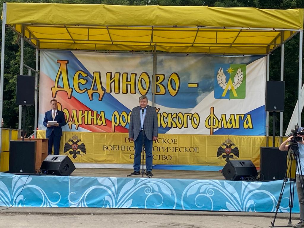 Божественная литургия, театрализованное представление, поздравления от руководства сухопутных войск, военно-морского флота , военно-воздушных сил России, Российского военно-исторического общества (РВИО) и обед из полевой кухни стали частью празднования Дня Российского флага в селе Дединово Московской области, где впервые традиционный триколор был поднят на первом российском корабле "Орел".