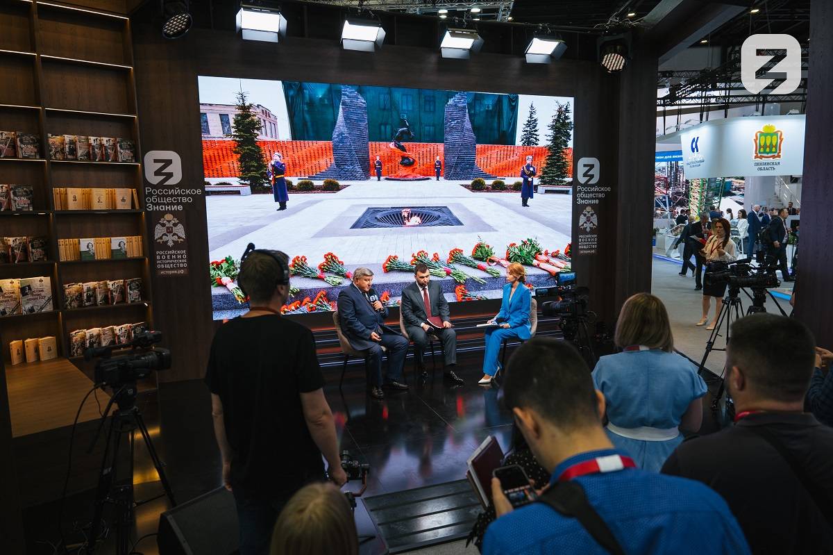 Встреча состоялась на ПМЭФ-2024 в мультимедийной студии Российского общества «Знание» и Российского военно-исторического общества «Знание.Лекторий».