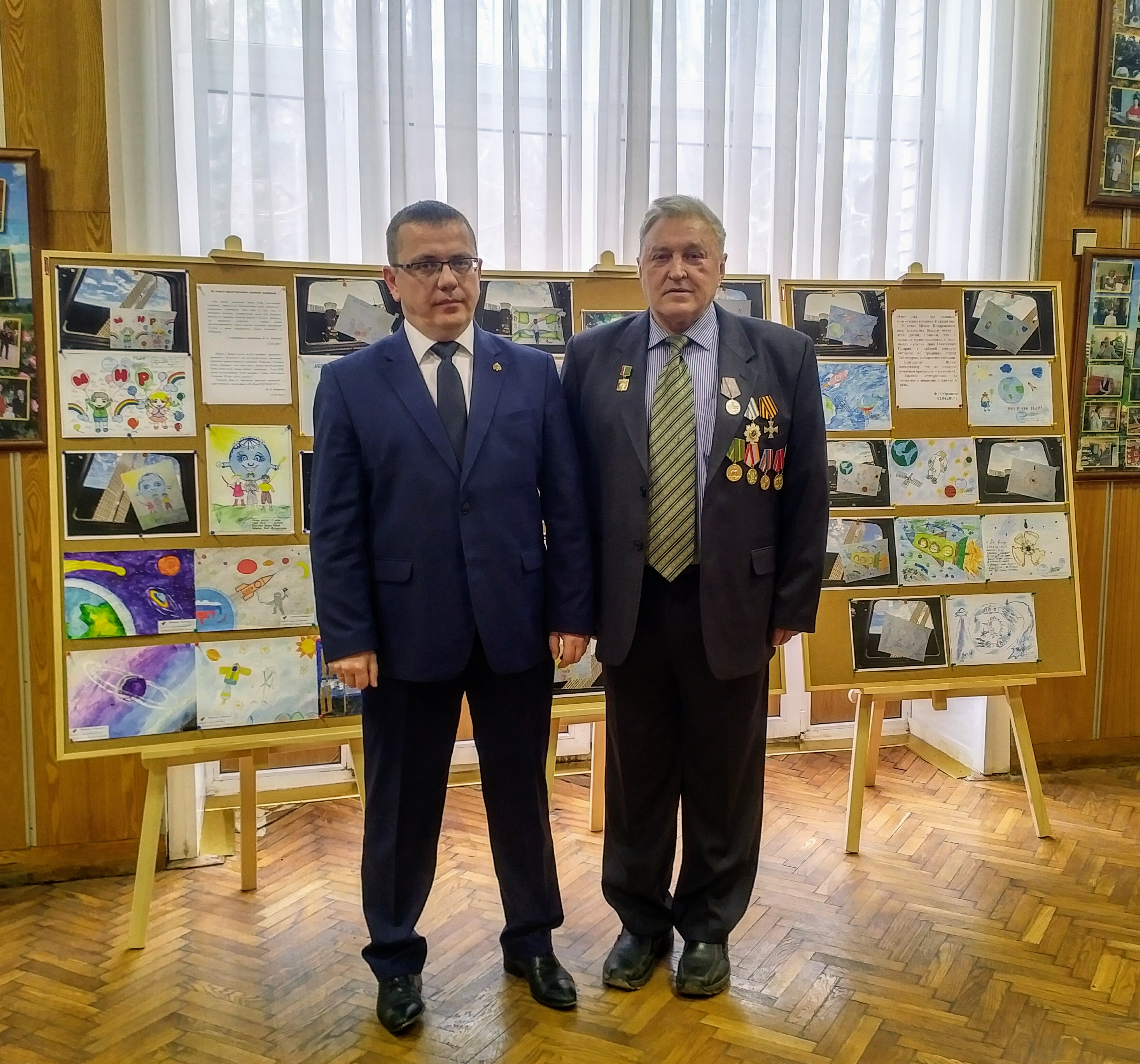 Детские рисунки, вернувшиеся из космоса, были торжественно переданы инициатору проекта, активисту РВИО из Архангельска Владиславу Жгилёву.