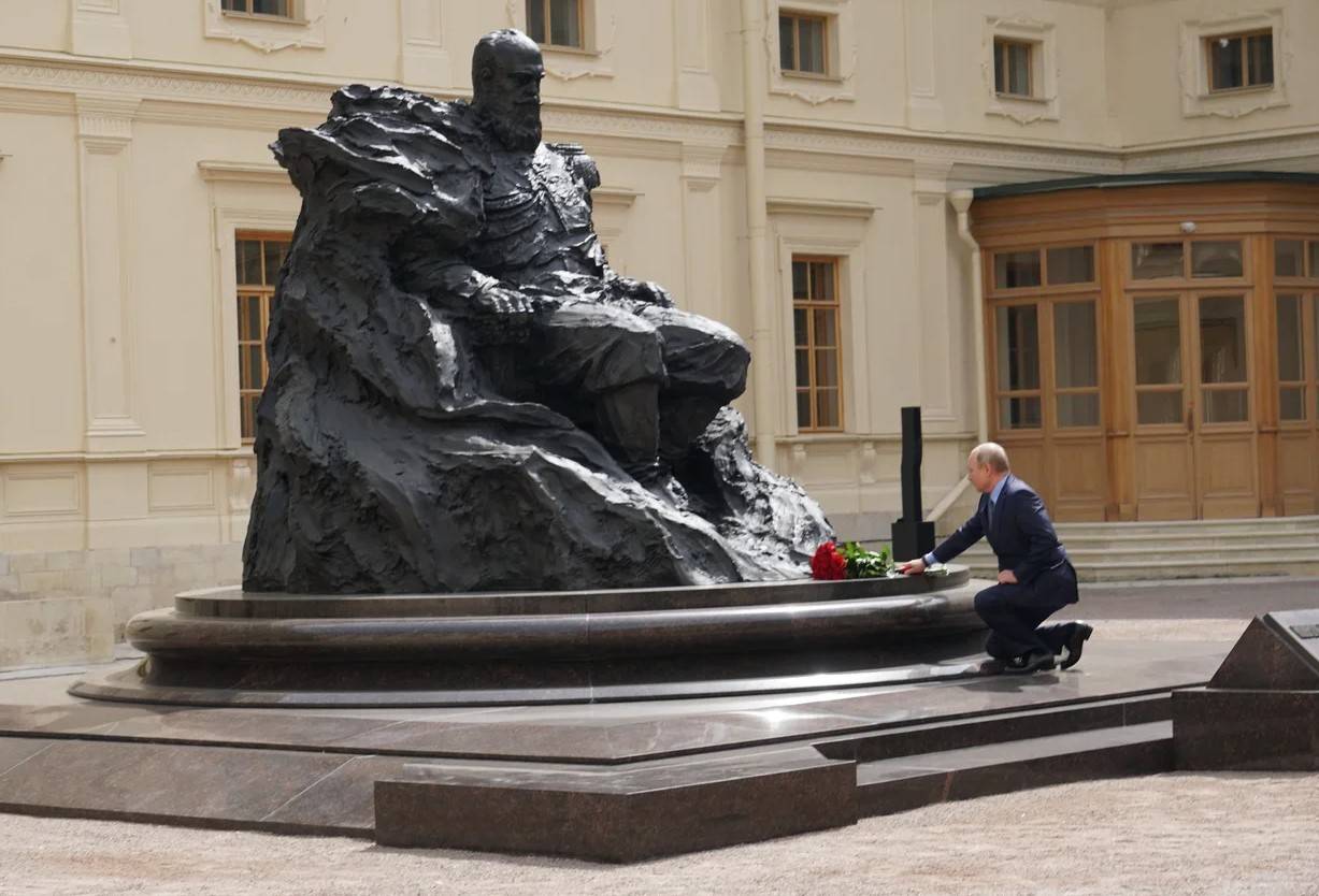 Открыт 5 июня 2021 года на территории Гатчинского дворца, любимой резиденции императора. Бронзовый памятник Александру III, сидящему в тронном кресле, создан по эскизам скульптора Паоло Трубецкого 1899 года, которые все это время бережно хранились в Русском музее. Автор памятника — выпускник Российской академии художеств Владимир Бродарский. Монумент возведен Российским военно-историческим обществом в рамках реализации национального проекта «Культура». Работы по созданию памятника проведены в 2020 году, когда отмечалось 175-летие со Дня рождения императора Александра III.