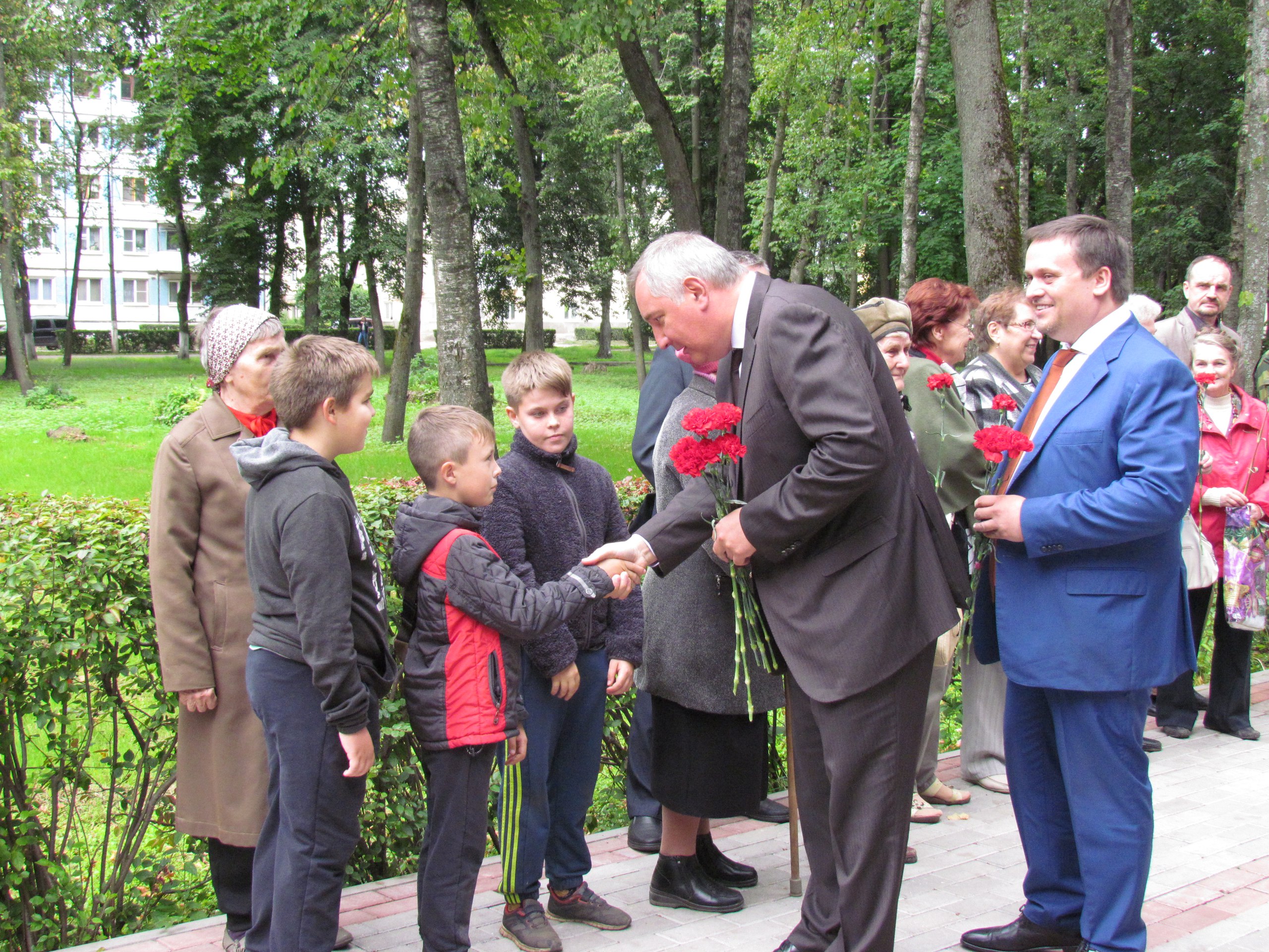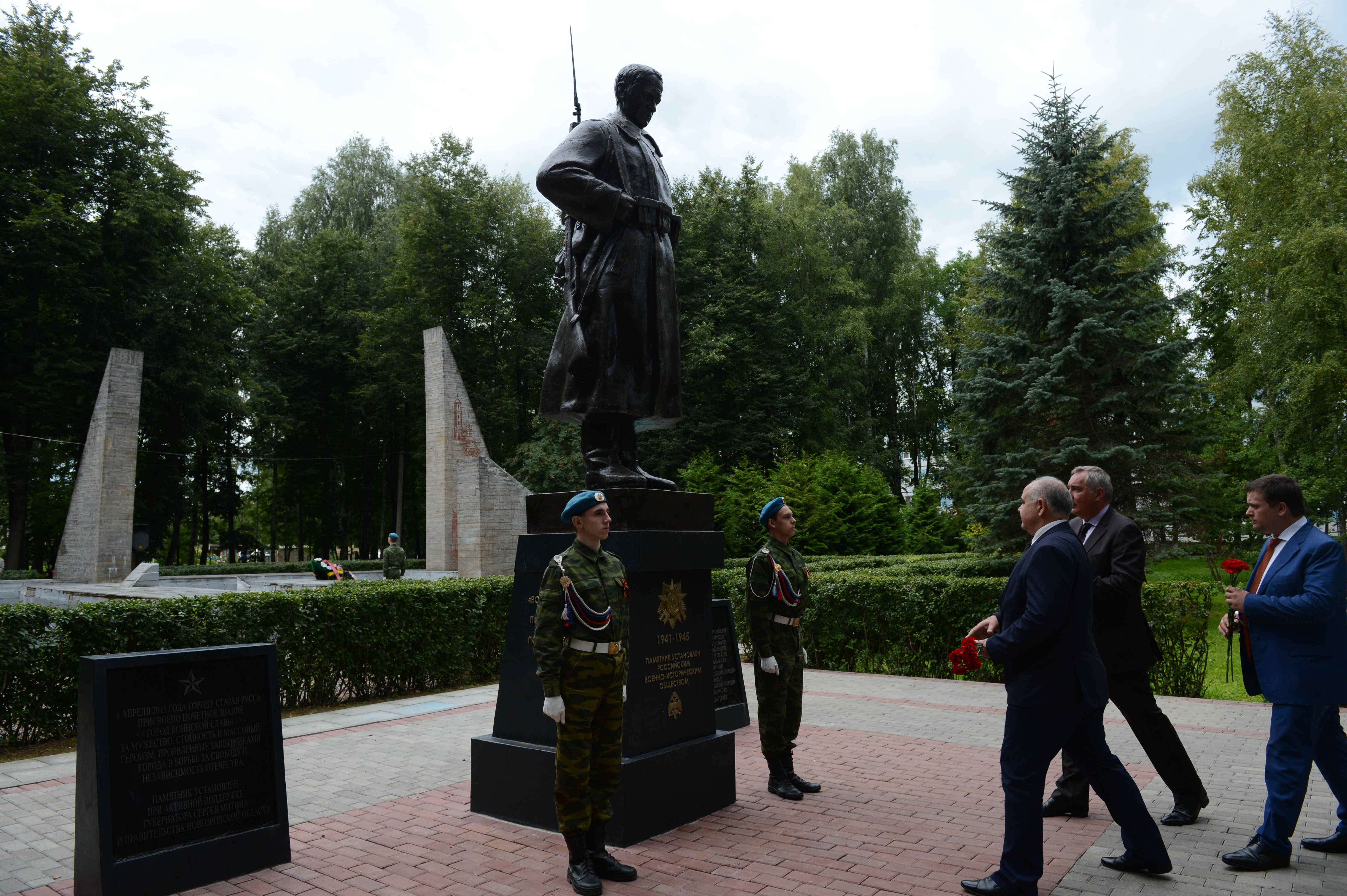 В этот же день Дмитрий Рогозин и Андрей Никитин возложили цветы к памятнику Советскому солдату, установленному Российским военно-историческим обществом в Парке Победы. На церемонии присутствовали Ветераны Великой Отечественной войны, Глава Старорусского района Василий Бордовский и научный директор РВИО Михаил Мягков.