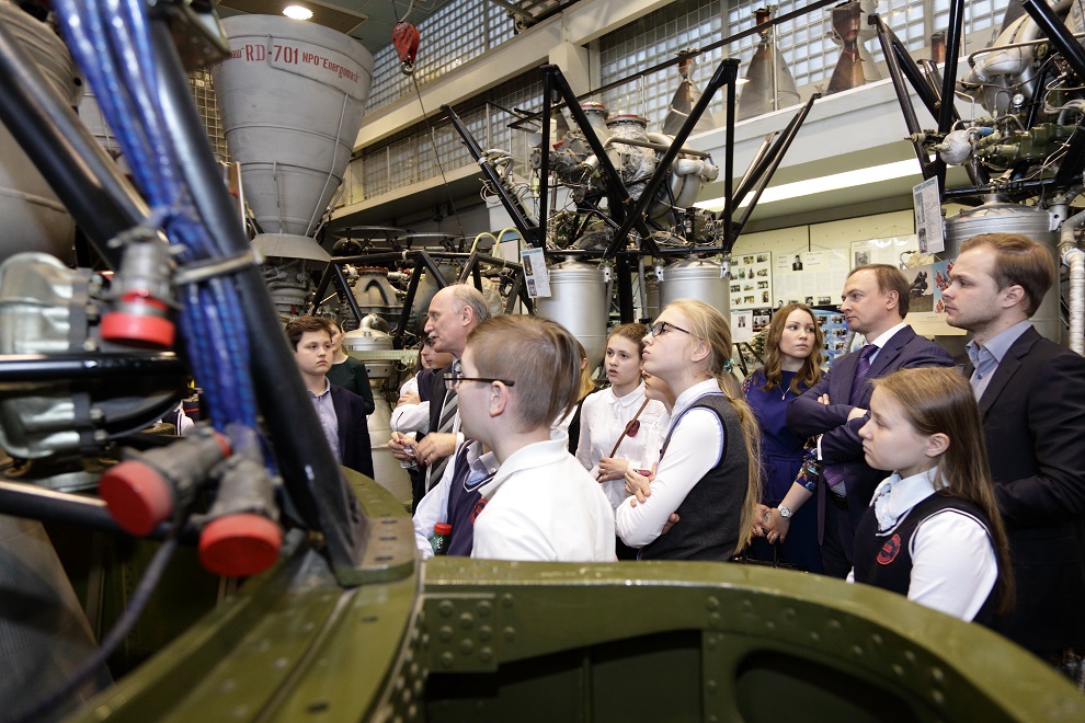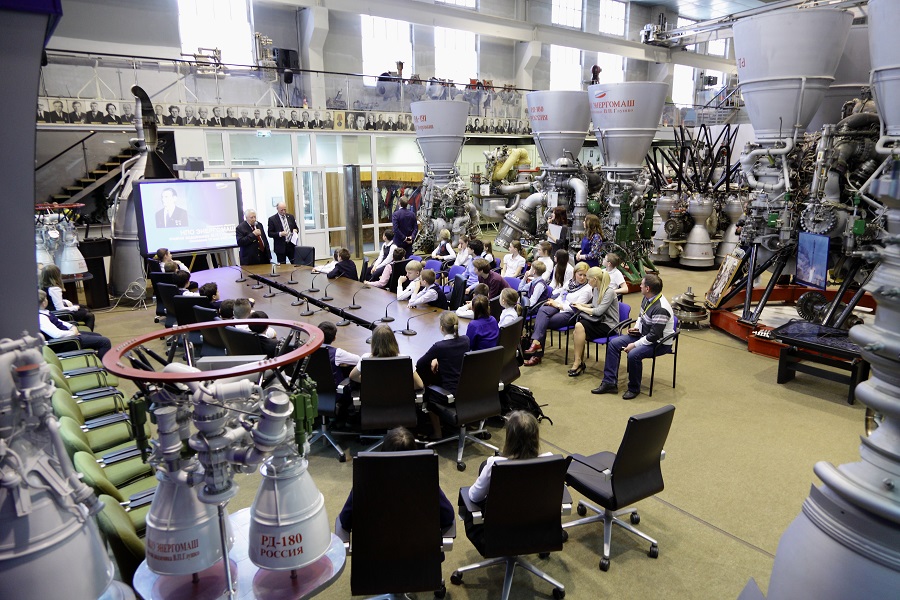 На экскурсии ученики 6 и 7 классов прослушали ознакомительную лекцию о работе предприятия и посетили Демонстрационный зал, где увидели макеты двигателей и экспериментальных агрегатов. Первые экспонаты зала относятся еще к концу 40-х годов, а первые разработки жидкостных ракетных двигателей велись под руководством Валентина Петровича Глушко с 1929 года. Больше всего детей впечатлили гигантские габариты двигателей, которые использовались и продолжают эксплуатироваться в составе межконтинентальных баллистических ракет и космических ракет-носителей.