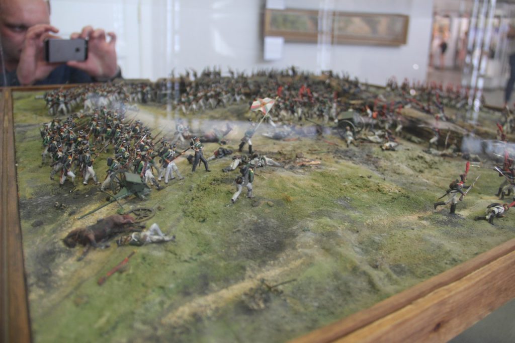 На выставке также представлены предметы обмундирования и снаряжения русской и французской армий первой половины XIX века, редкие книги, скульптурные произведения, военная миниатюра и археологические находки с поля сражения: ядра, осколки гранат, картечные пули, мундирные пуговицы, конские подковы.