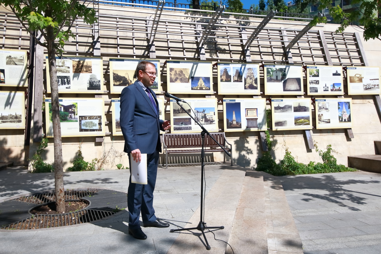 After that, the exhibition "Memory of the war. 140 years of the Russo-Turkish Liberation War of 1877-1878" was opened. The exposition was prepared by the Russian Military Historical Society in cooperation with the Center for the Preservation and Socialization of Cultural Heritage (Bulgaria). The exhibition consists of 16 fragments, each dedicated to the significant Bulgarian monument to the Russian people, who fought for Bulgarian freedom and independence.
