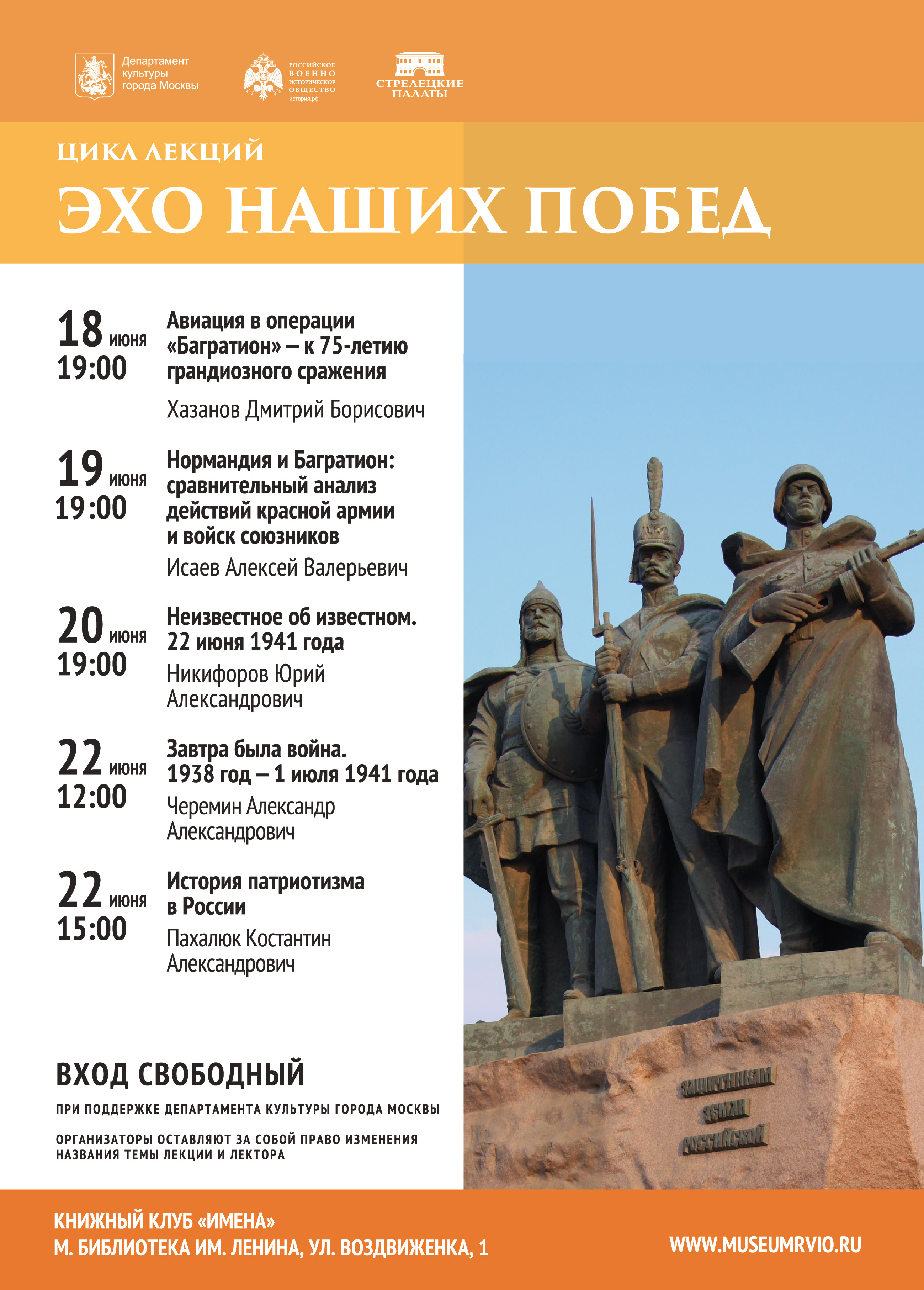Лекторий «Эхо наших побед» — просветительский проект Российского военно-исторического общества, реализуется при поддержке Департамента культуры города Москвы.
