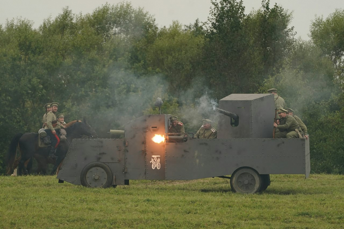 Масштабная реконструкция смоделировала эпизод боев Русской императорской армии против австро-германцев на западных рубежах Российской империи. В ней были задействованы пехота, артиллерия и кавалерия, а также бронеавтомобили. Действо, в том числе, было посвящено 105-летию с момента создания первых в мире автобронетанковых соединений. Они были созданы Русской императорской армией по инициативе Александра Добржанского – конструктора русских бронеавтомобилей.