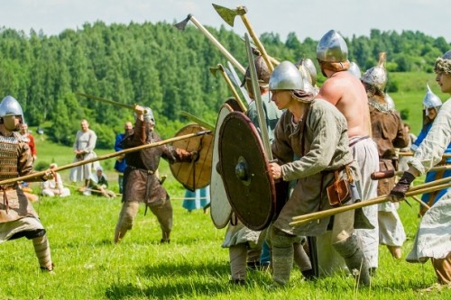 Парад-представление участников фестиваля. «Битва дружин» (показательное сражение). Проверка и демонстрация «легендарных» достижений героев эпохи становления древнерусского государства и эпохи викингов.