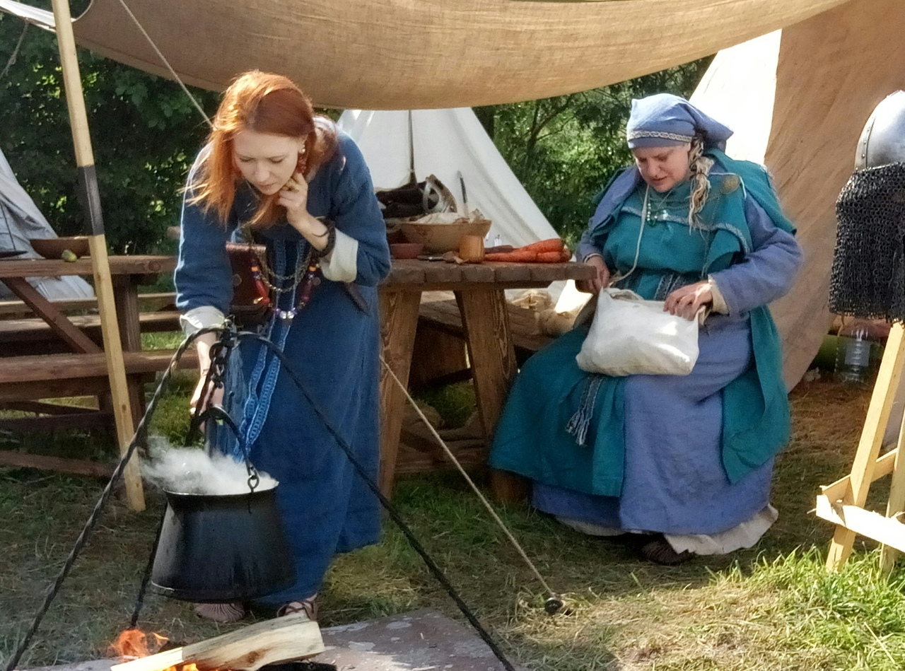 По славной традиции фестиваля свои ряды распахнула ярмарка, на которой свои лавки открыли мастерские «Древоделы» (Псков), «Ильменская лунница», «Новгородский двор», «У Алёны» (Великий Новгород), купеческая лавка «Куна» (Москва), «Мастерская Свенельда» и «Чертог» (Санкт-Петербург).