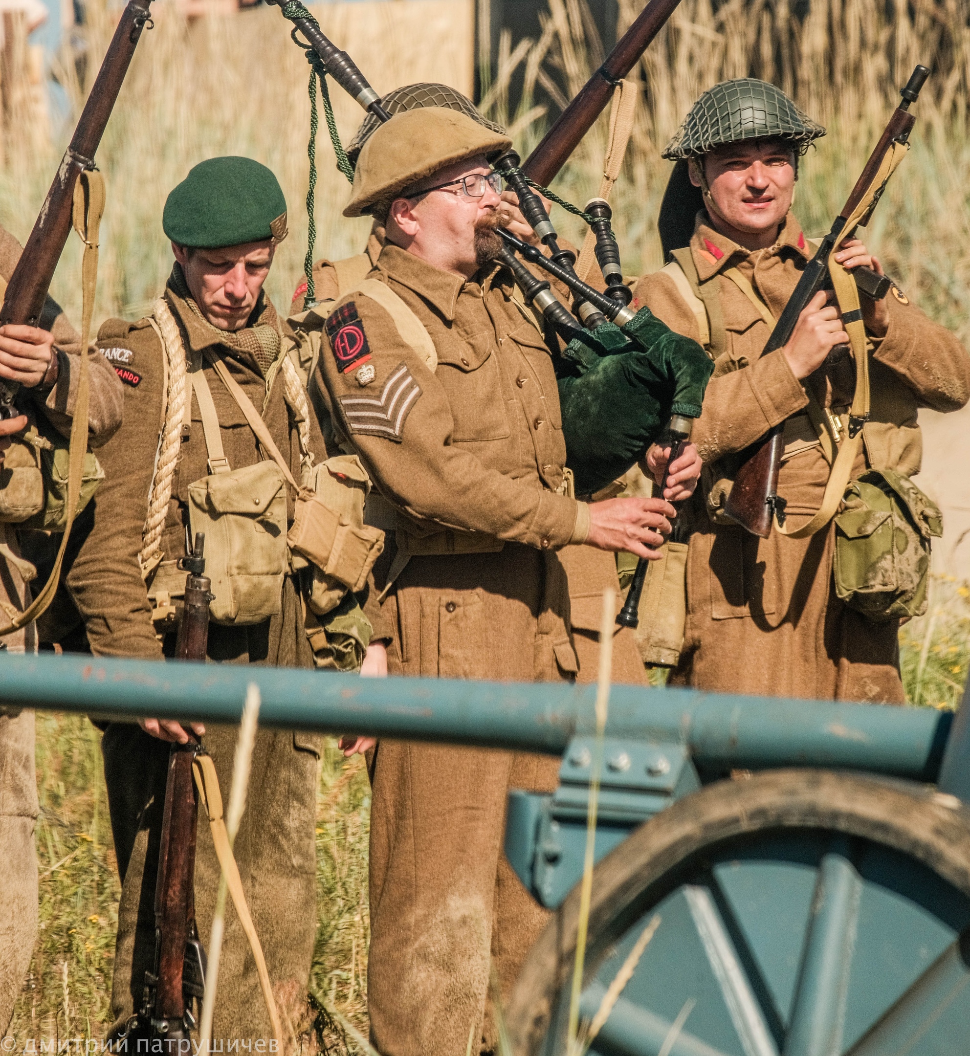 The sounds of bagpipes were heard over the "battlefield" - like it was in Normandy. The role of the musician, who was heading into the attack in 1944, was taken over by the head of the St. Petersburg Pipers Association Vladimir Molodtsov.