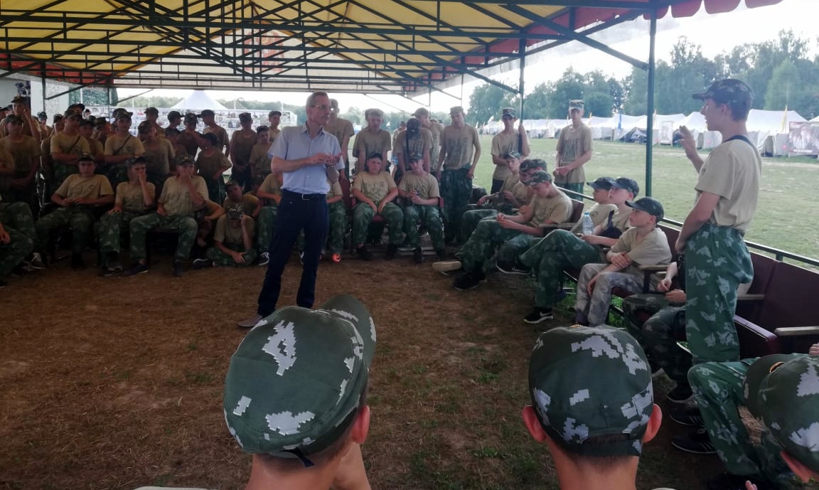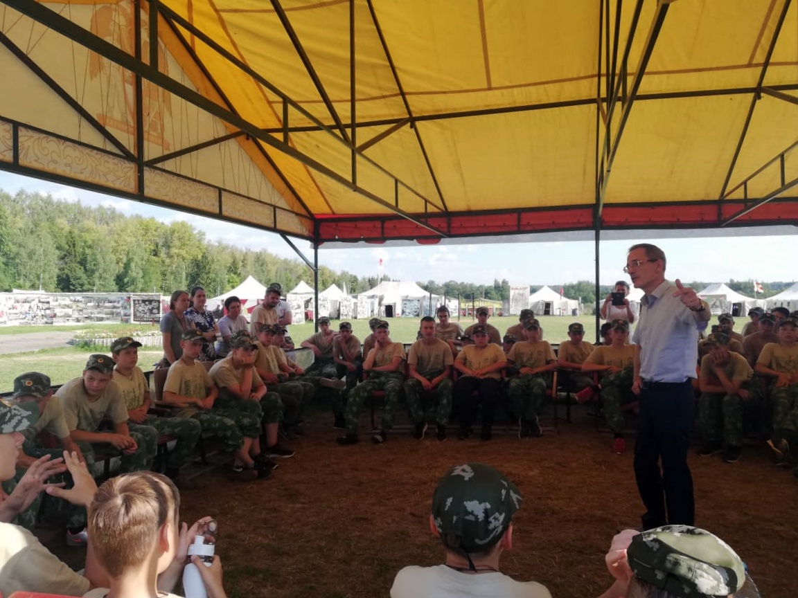 Почетным гостем мероприятий стал Научный директор Российского военно-исторического общества (РВИО) Михаил Мягков, который также навестил воспитанников военно-исторического лагеря «Бородино-2019» и прочитал им лекцию на тему войны и мифов.