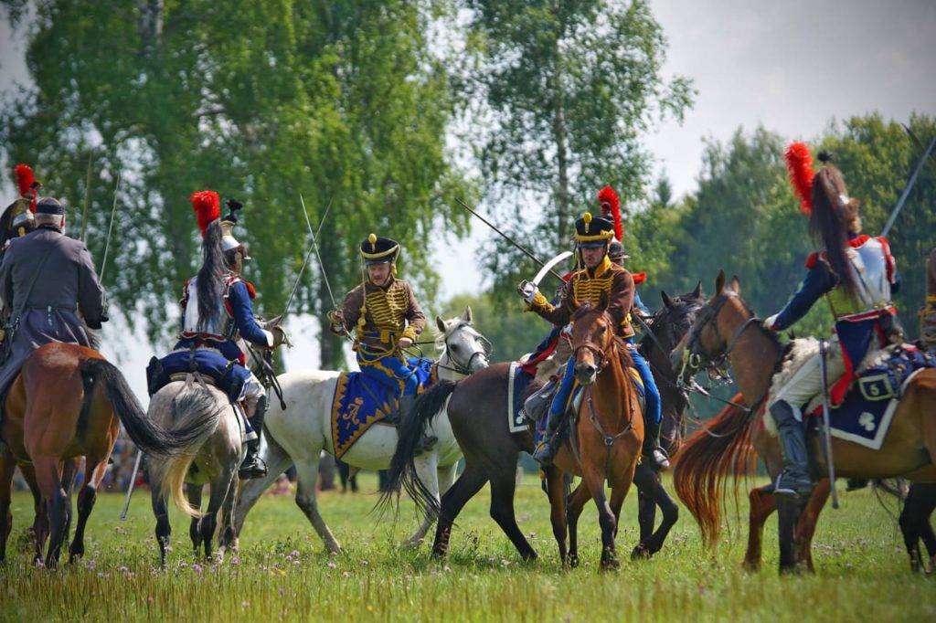Продолжением программы стала реконструкция эпизода Отечественной войны 1812 года. На поле сразились бравые Ахтырские гусары и французские кирасиры - «железные люди» императора Наполеона. Реконструкция была посвящена 235-летию со дня рождения гусара и поэта Дениса Давыдова.