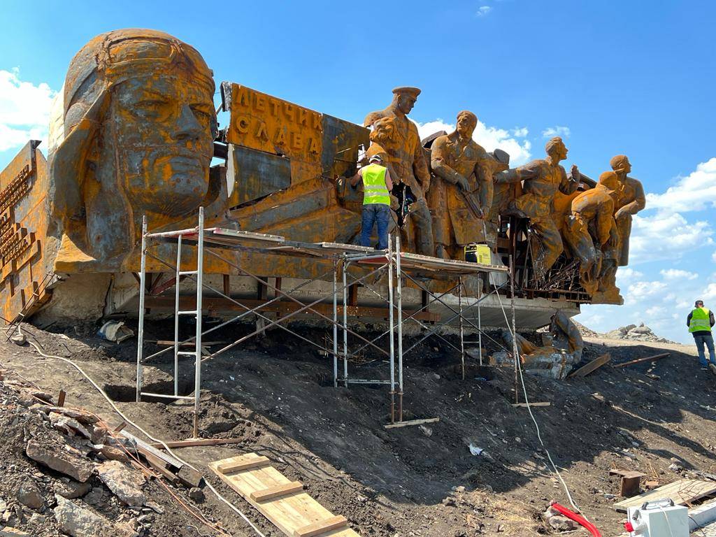 В 2022 году к восстановлению мемориала приступили Российское военно-историческое общество (РВИО) и Военно-строительный комплекс Министерства обороны Российской Федерации. В кратчайшие сроки были воссозданы 4 исторических рельефа, 36-метровая стела и 9-метровая фигура Солдата Победы.