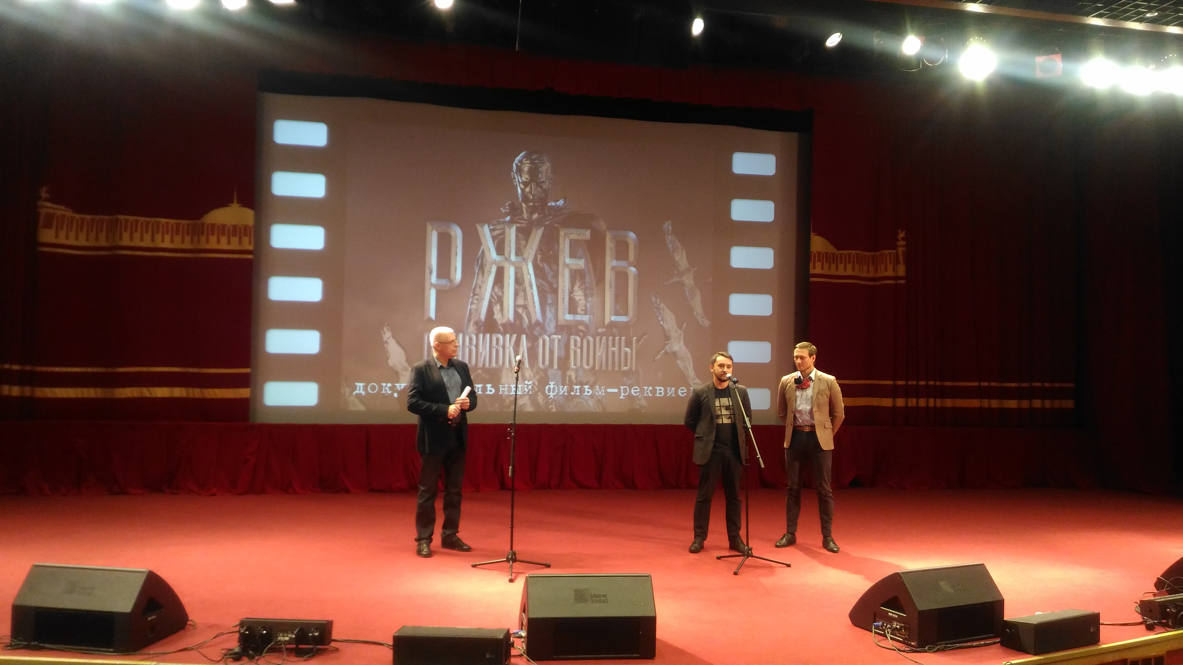 Предпремьерный показ фильма «Ржев. Прививка от войны» посетили авторы Ржевского мемориала Советскому солдату: скульптор Андрей Коробцов и архитектор Константин Фомин.