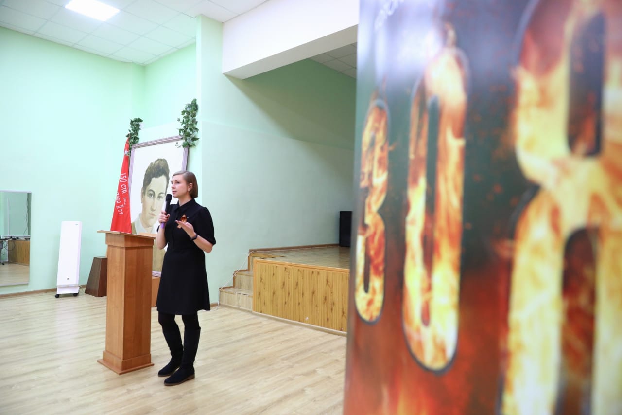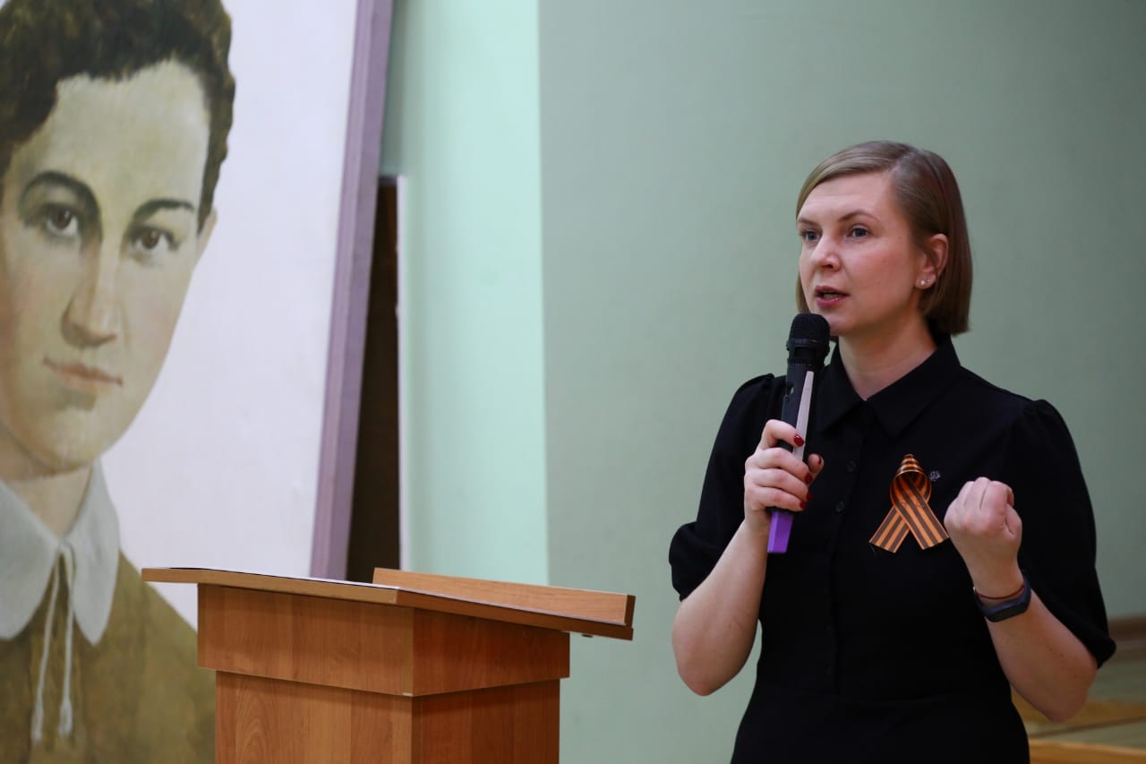 Затем перед гостями выступила заместитель Директора Департамента науки и образования РВИО Виктория Петракова, которая рассказала о боевом пути Зои Космодемьянской, ее подвиге и поделилась своими эмоциями от просмотра фильма: