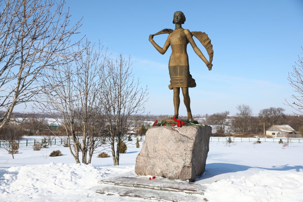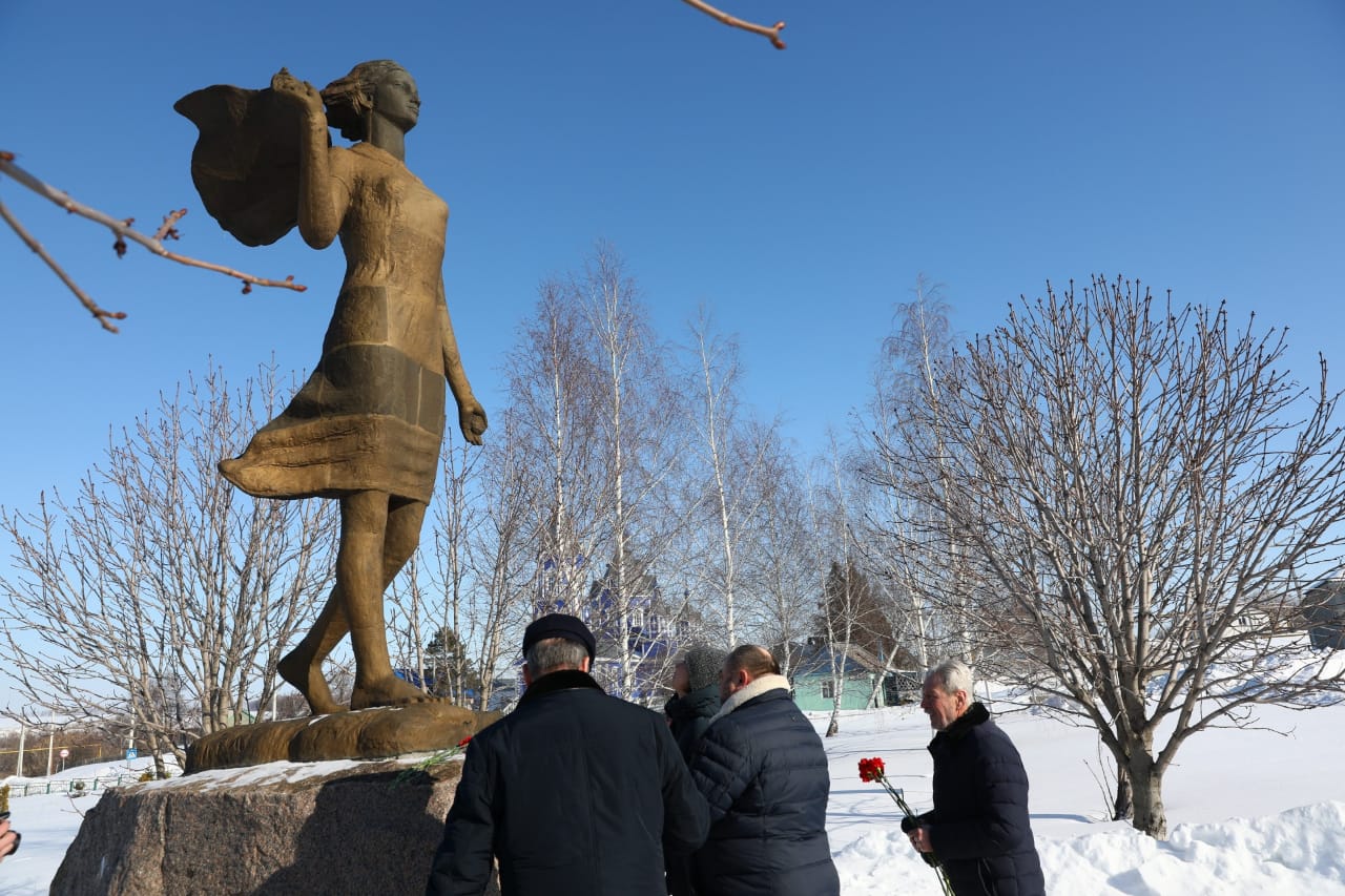 Мероприятия в селе Осино-Гай начались с возложения цветов к памятнику Зое Космодемьянской, за которым бережно ухаживают жители села.