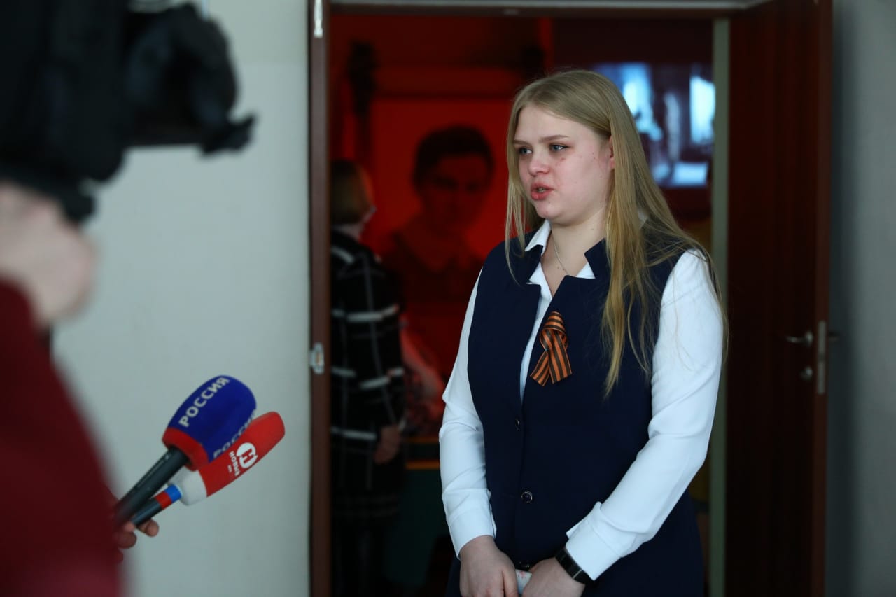 На протяжении многих десятилетий бессменным руководителем музея был Сергей Полянский. Сегодня на показ фильма пришла его внучка - ученица 10-го класса Осино-Гайской школы, Елизавета Демидова: