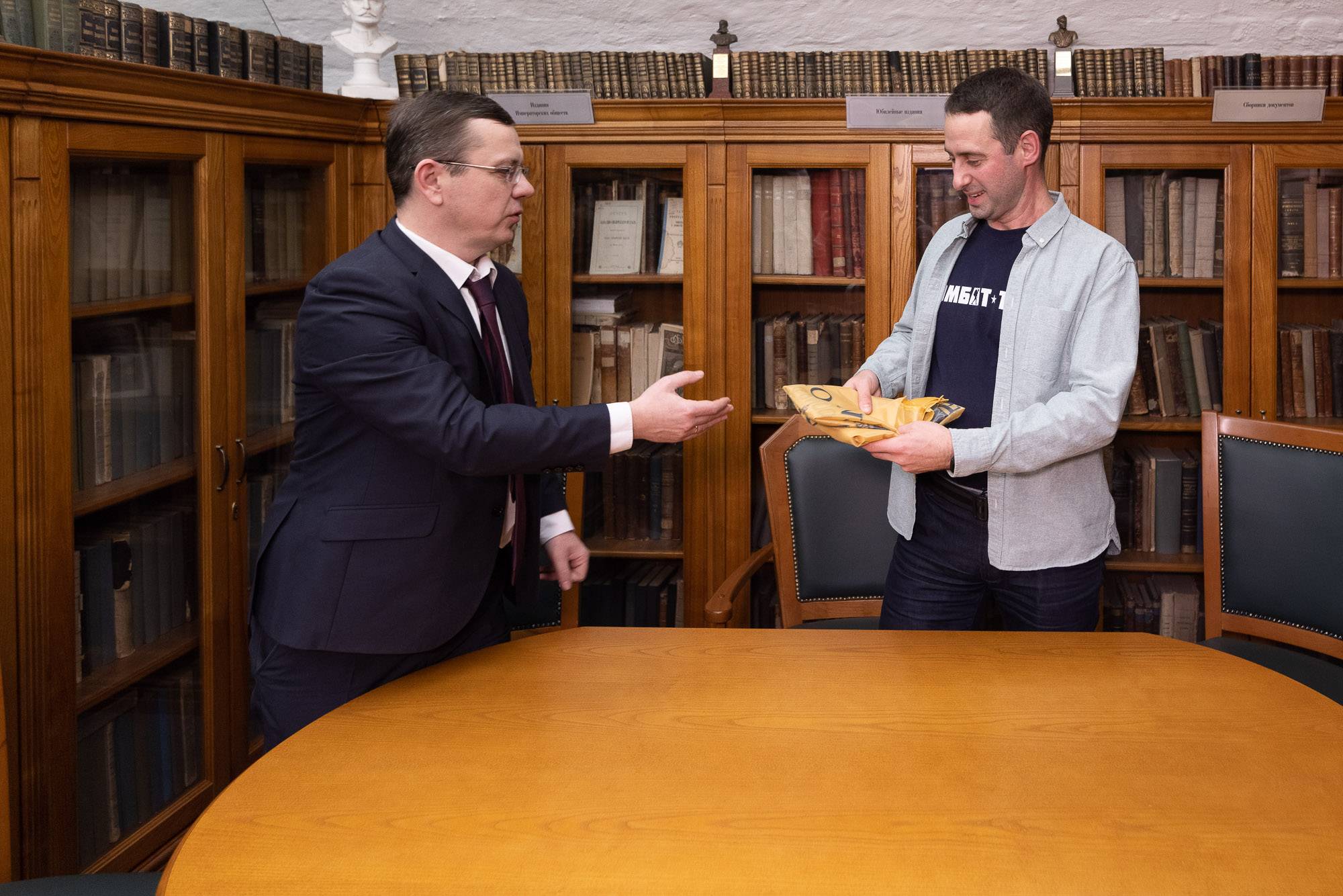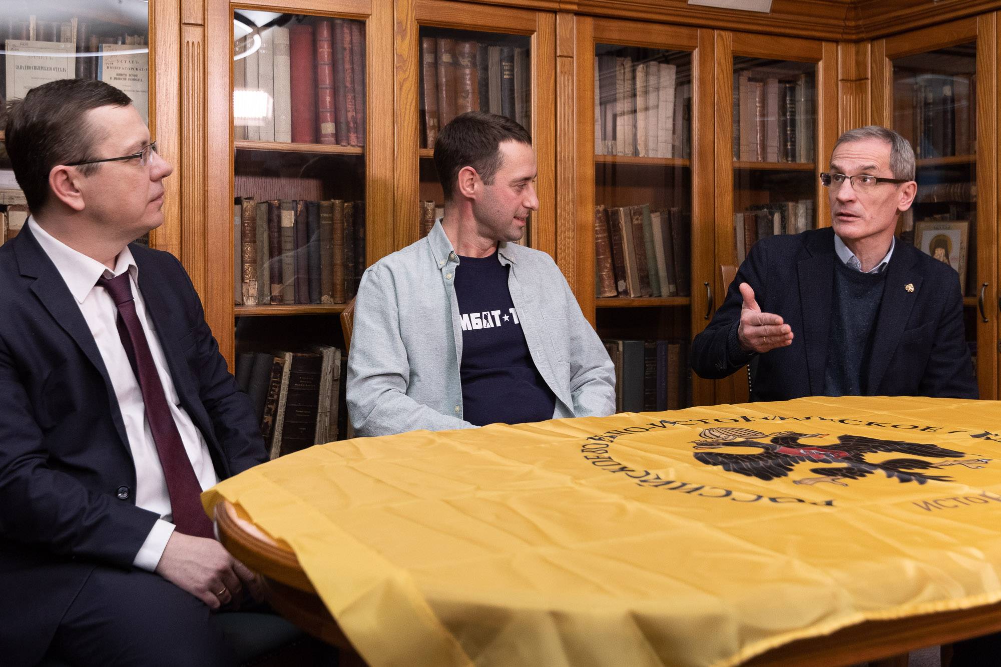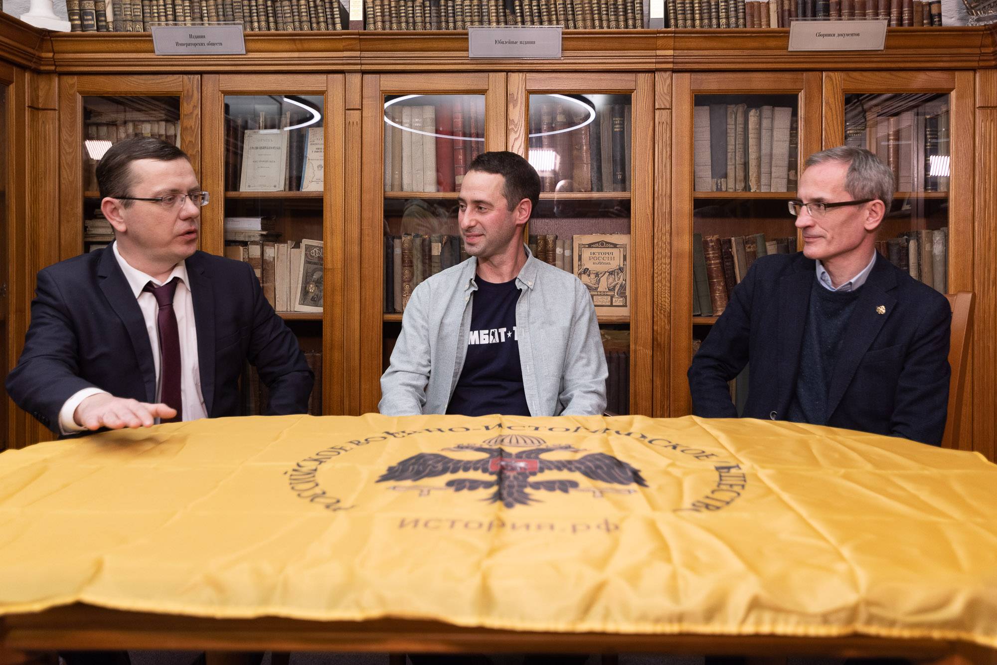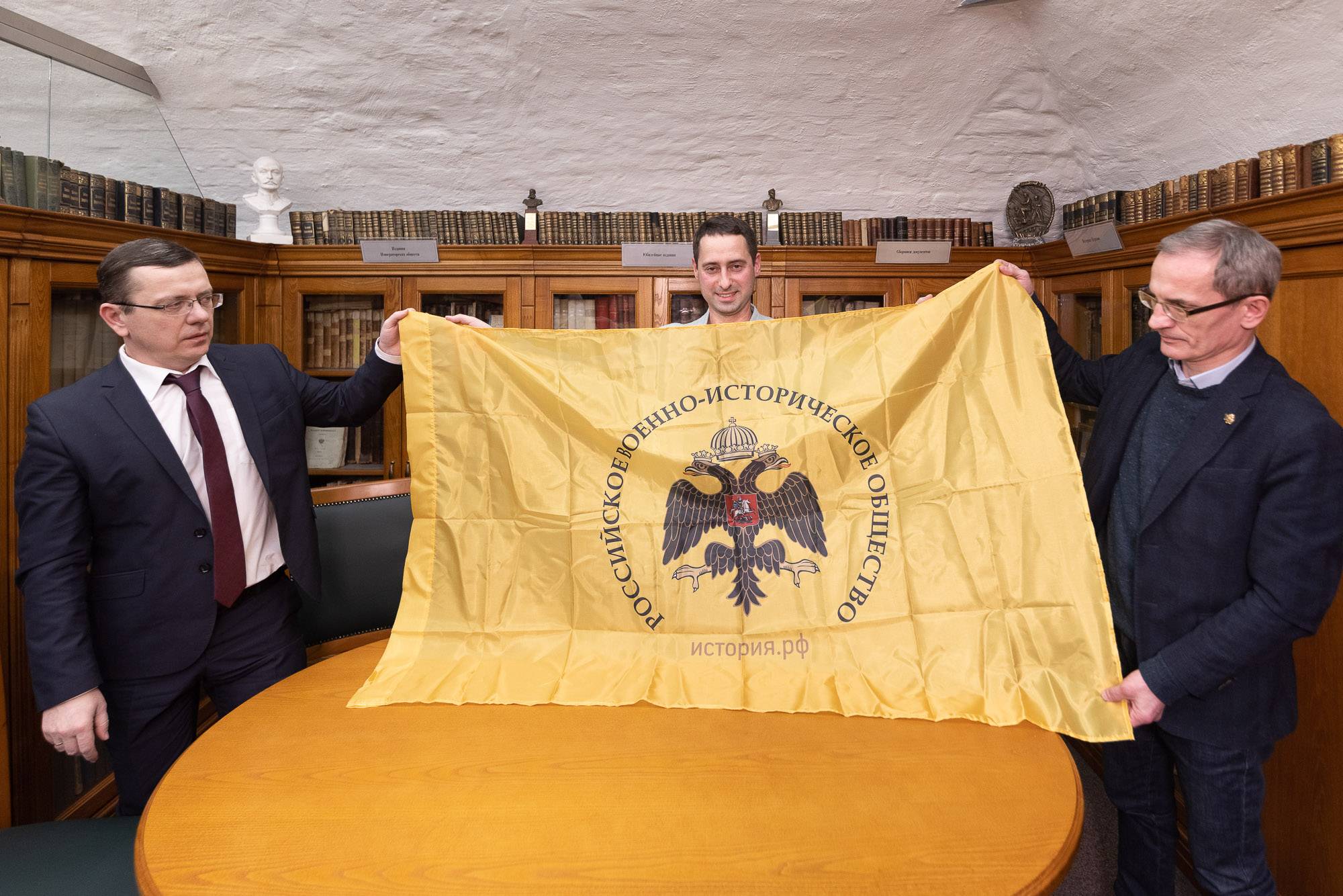 Флаг РВИО организатору экспедиции передали Научный директор Российского военно-исторического общества Михаил Мягков и начальник Департамента по координации вопросов государственной политики в исторической и гуманитарной сферах Администрации Президента РФ Владислав Кононов. Они пожелали участникам хорошей погоды на маршруте и выполнения всех поставленных целей.