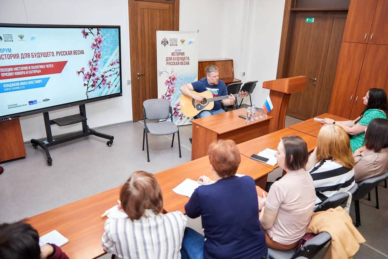 В рамках форума Научный директор Российского военно-исторического общества Михаил Мягков выступил с лекцией «Новые учебники: единая логика непрерывной российской истории», член Общественной палаты РФ, член Центрального совета РВИО Александр Малькевич провел для молодежи региона мастер-класс «Настоящая Россия: путёвые заметки», научный сотрудник РВИО Виктория Петракова посвятила свою встречу теме «Сохранение исторической памяти: актуальные и традиционные форматы», теле- и радиоведущий, блогер Трофим Татаренков рассказал о формировании массового сознания и противостоянии манипуляциям, а сатирик и блогер Иван Кондаков – о теме «История и политика через призму юмора и сатиры».