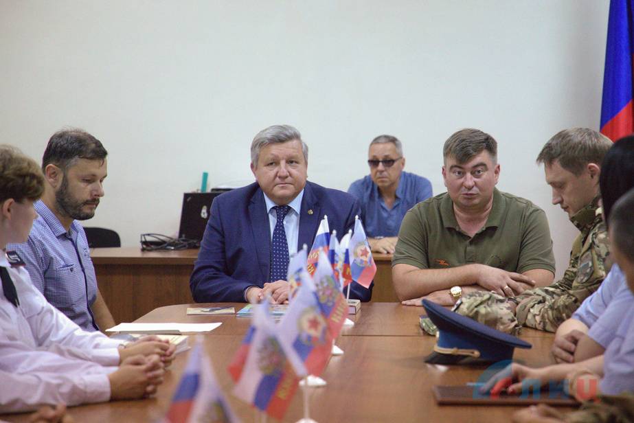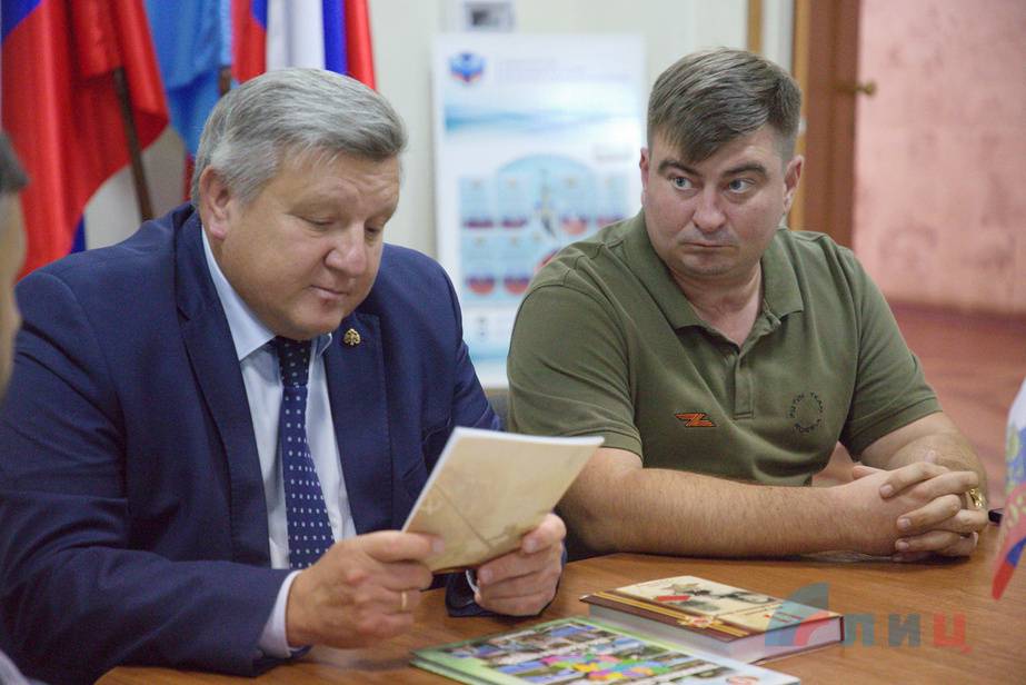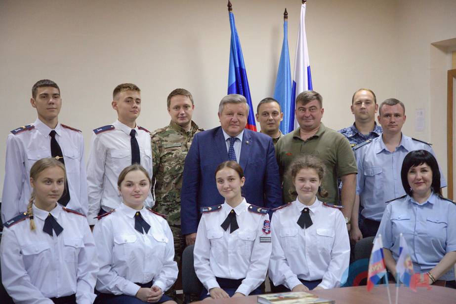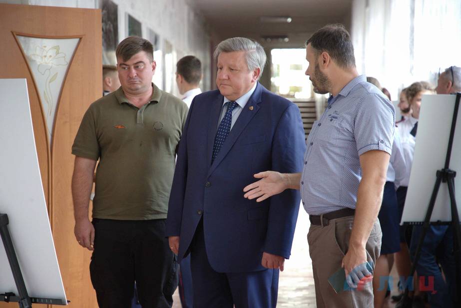 В день открытия выставки Николай Овсиенко пообщался с воспитанниками лицея «Молодая гвардия» РДЮЦК и рассказал им о восстановлении мемориалов в Республике, открытии новых памятников, а также пригласил молодежь ЛНР принять участие в проектах РВИО.