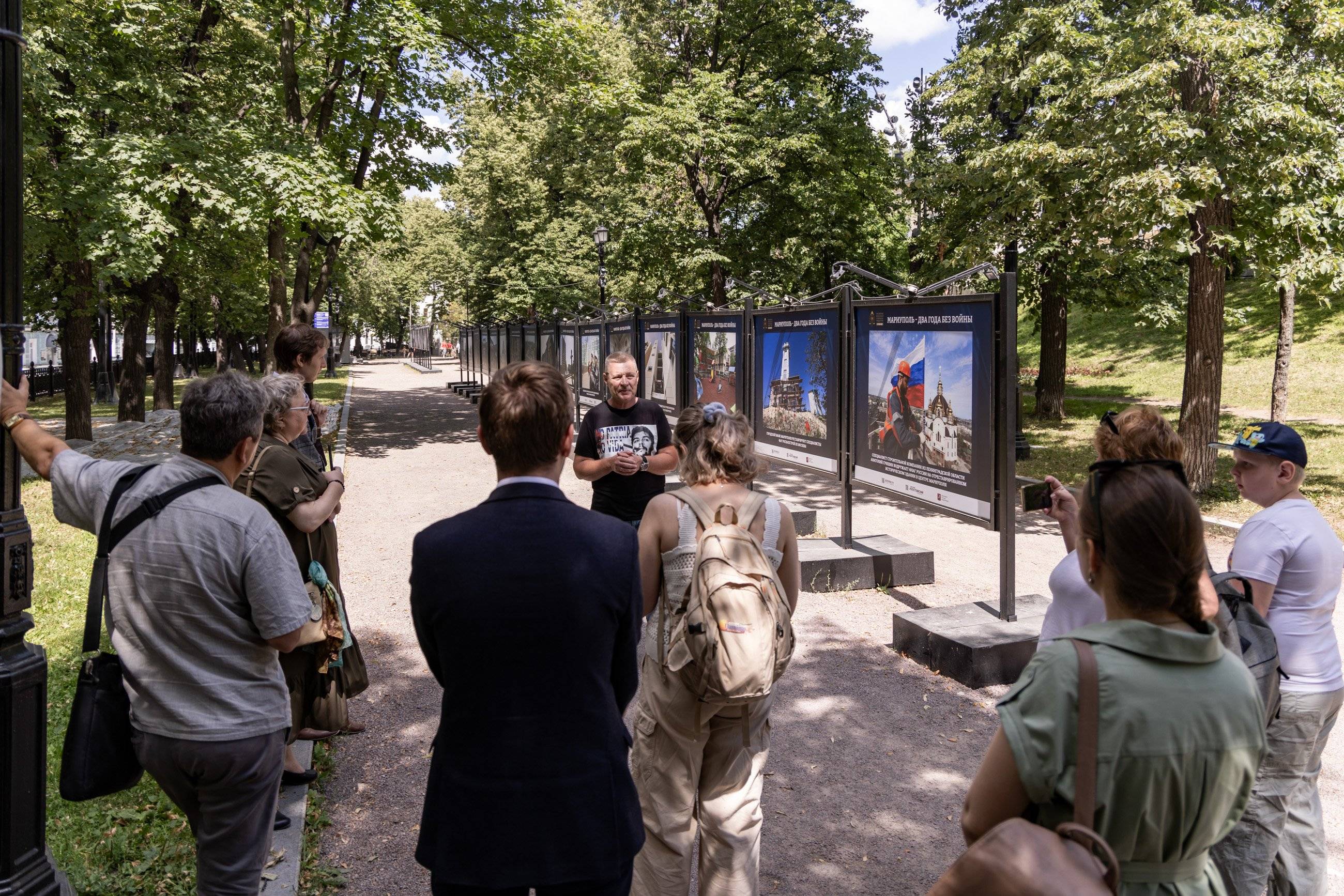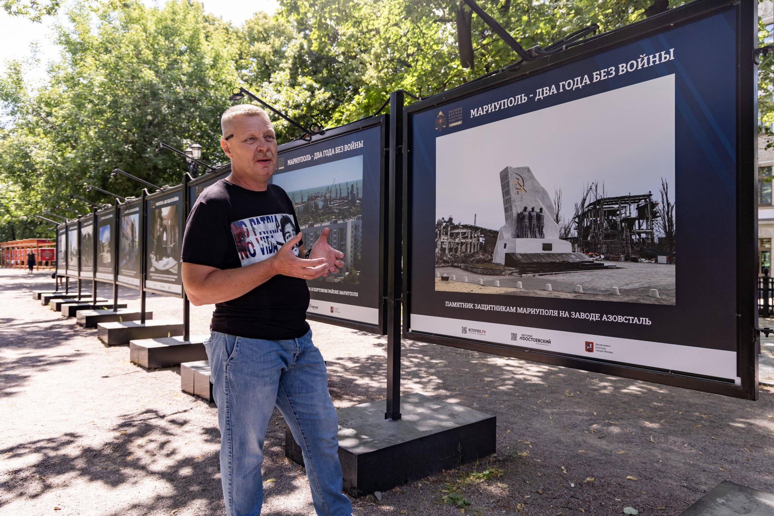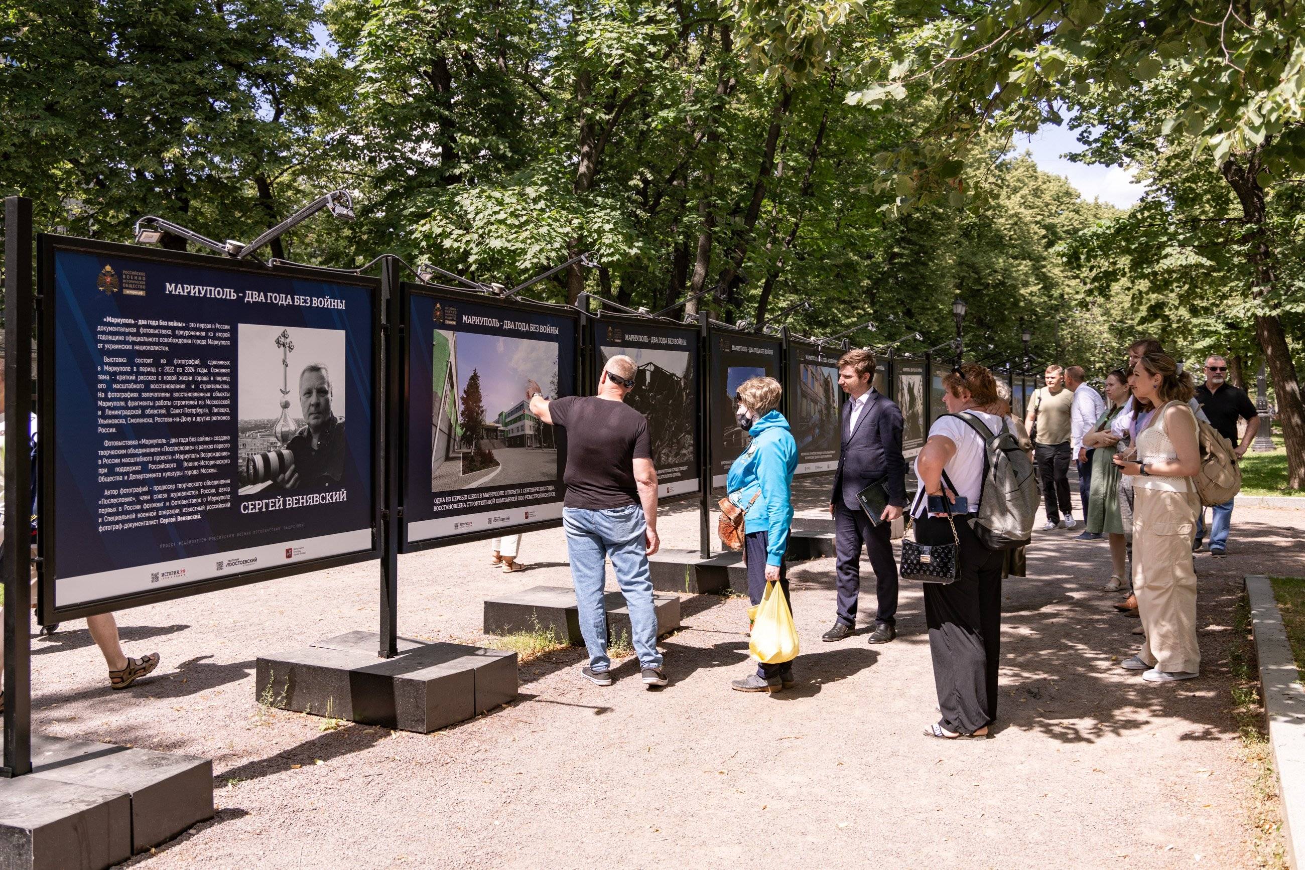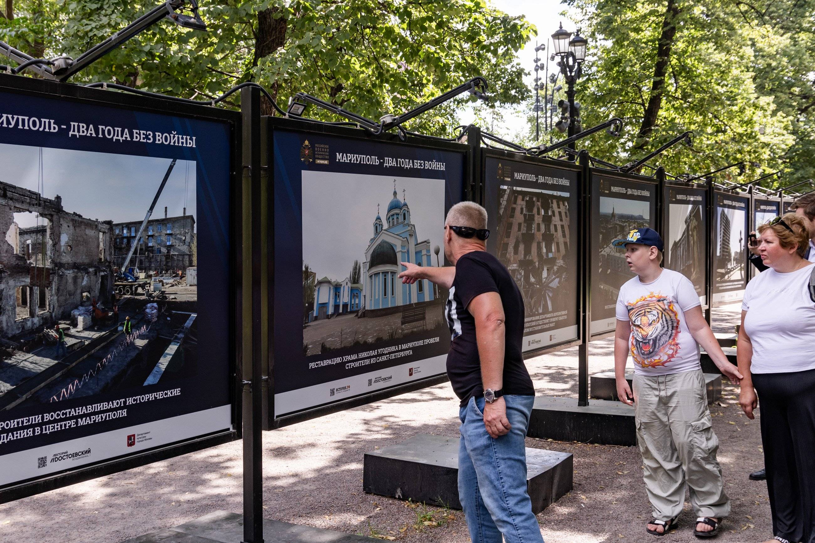 Фотовыставка «Мариуполь – два года без войны» организована творческим объединением «Послесловие» в рамках масштабного проекта «Мариуполь Возрождение» при поддержке Российского военно-исторического общества и Департамента культуры города Москвы. Выставка продлится на Гоголевском бульваре до конца июля, после чего по просьбам местных жителей будет передана в Мариуполь