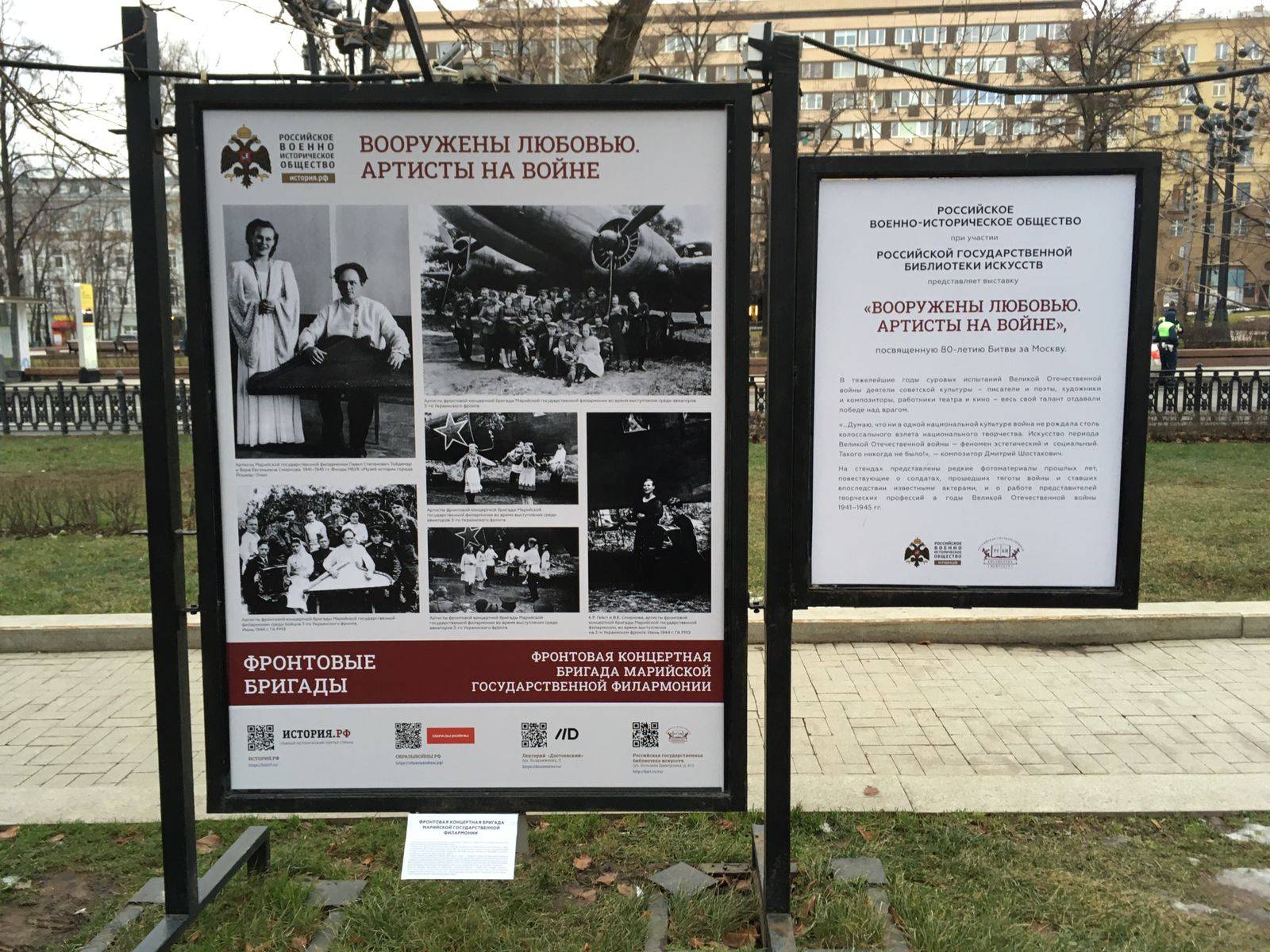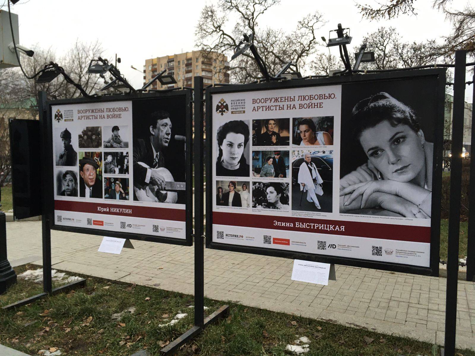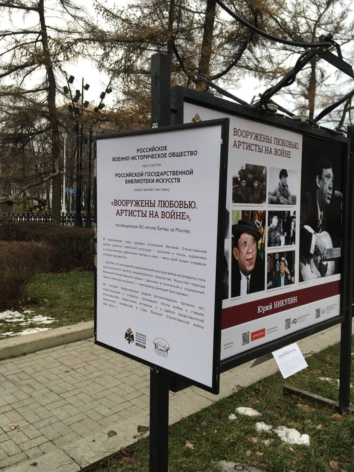 Российское военно-историческое общество при участии Российской государственной библиотеки искусств подготовило фотовыставку «Вооружены любовью. Артисты на войне», посвященную 80-летию Битвы под Москвой.