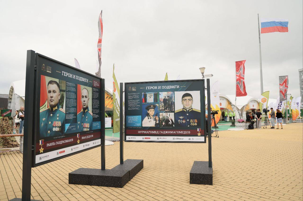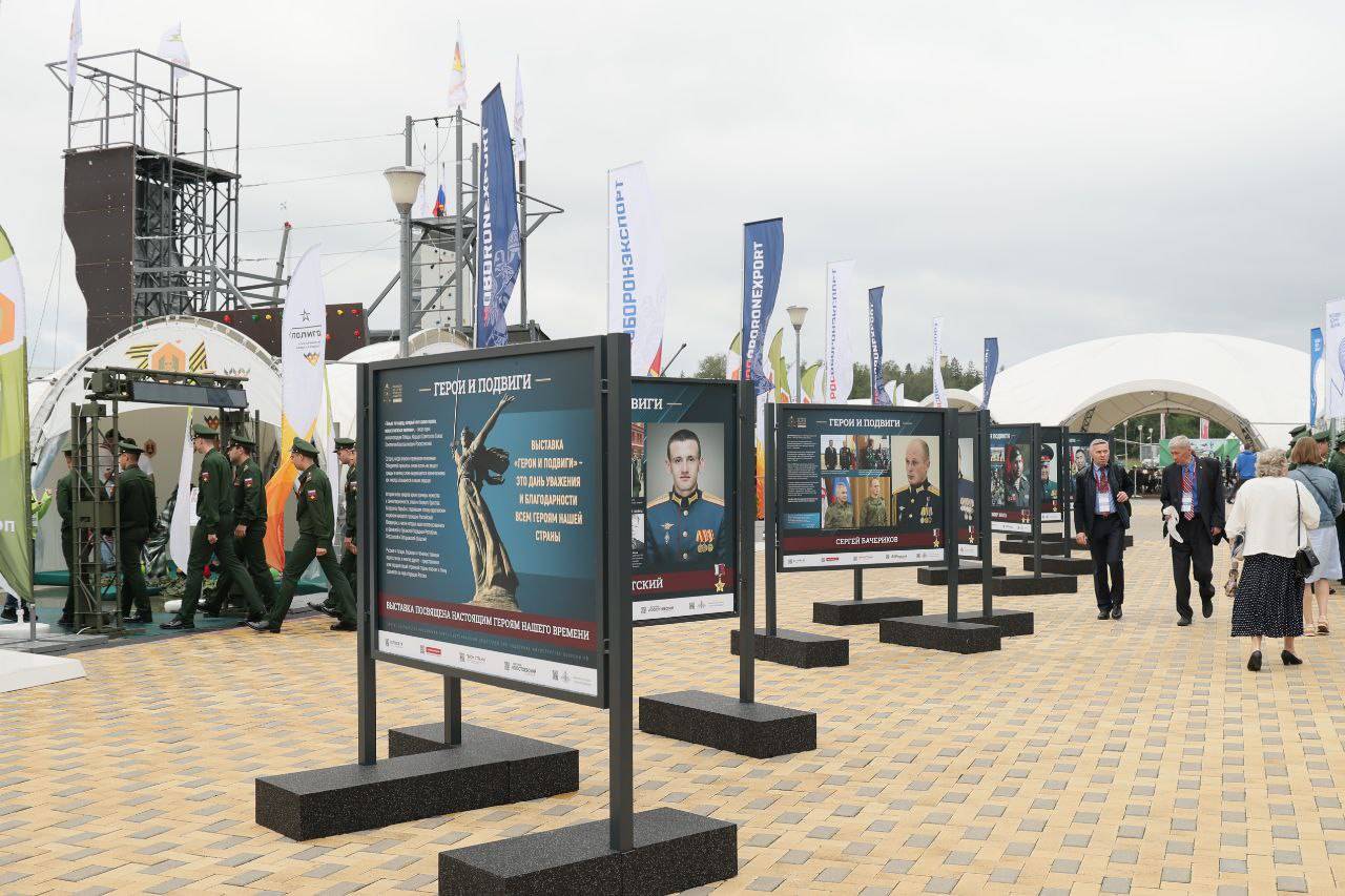 Фотовыставка «Герои и подвиги», посвященная участникам Специальной военной операции размещена на главной аллее, рядом с Конгресс-центром Форума «Армия - 2023». Она будет доступна к просмотру все дни проведения Форума.