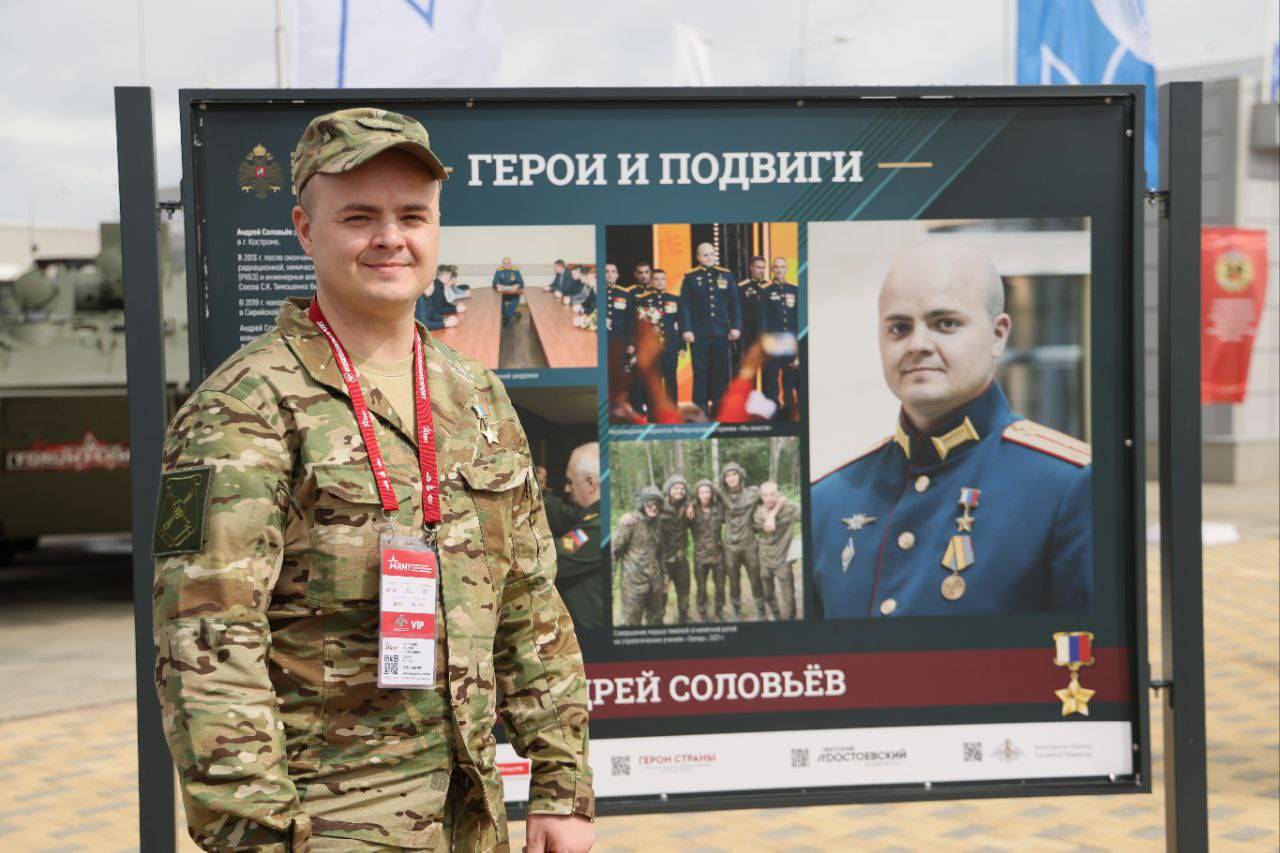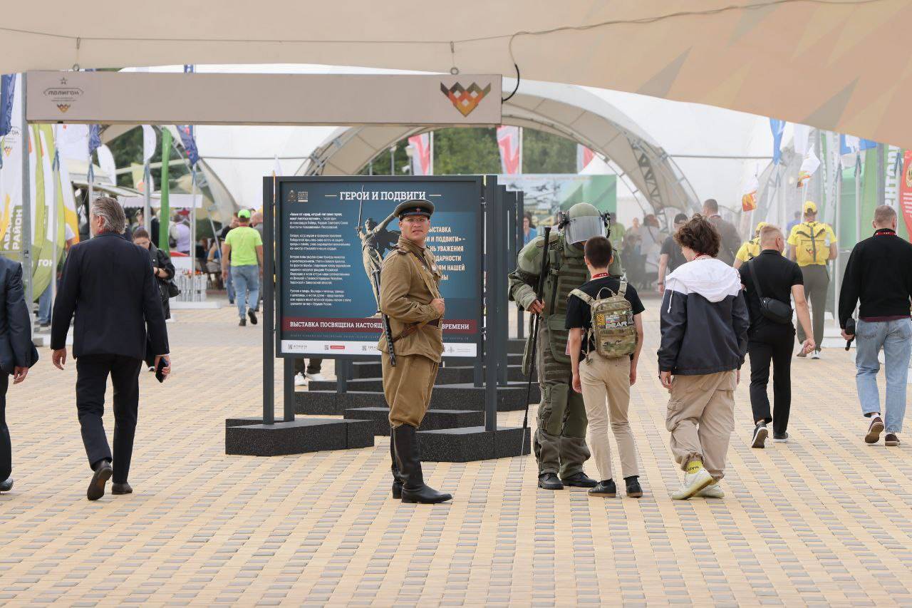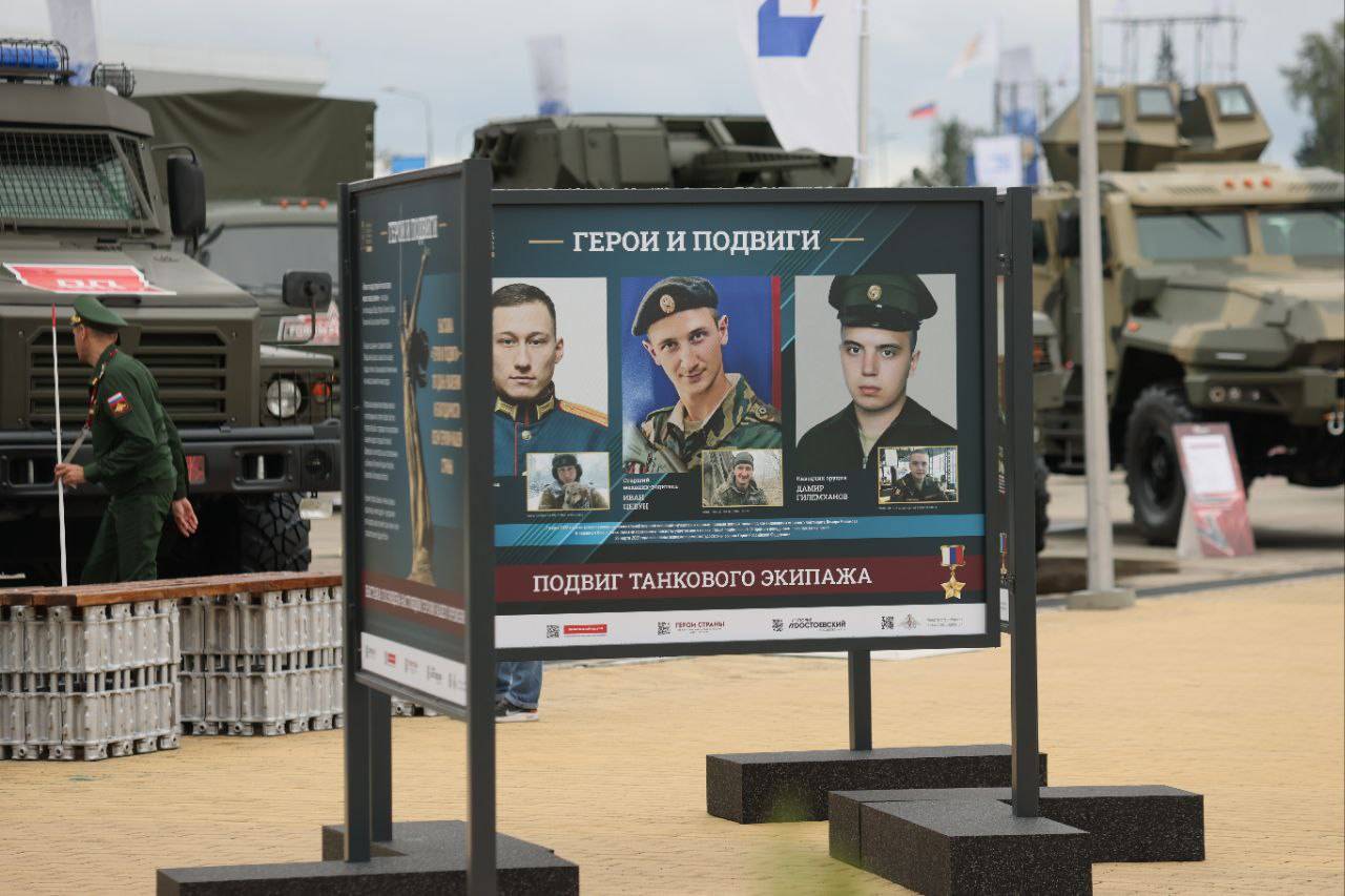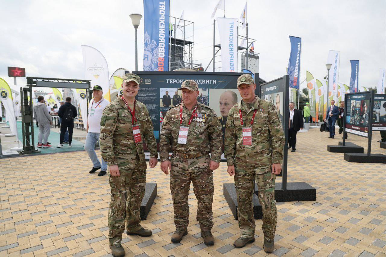 Герои России Сергей Бачериков и Андрей Соловьёв посетили фотовыставку Российского военно-исторического общества «Герои и подвиги», открытую на международном военно-техническом форуме «Армия - 2023».