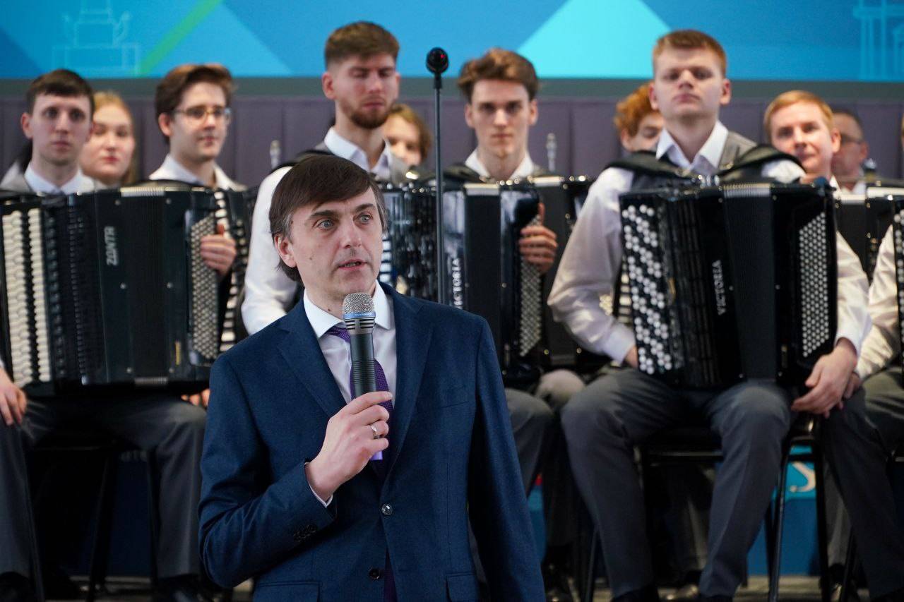 С приветственным словом к учителям обратился Министр просвещения Российской Федерации Сергей Кравцов. Он подчеркнул, что Минпросвещения России делает все для того, чтобы подрастающее поколение получало качественное образование, а воспитательная работа охватывает не только школы, но и педагогические вузы России. Каждая неделя начинается с церемонии поднятия флага, исполнения Государственного гимна и внеурочных занятий «Разговоры о важном».