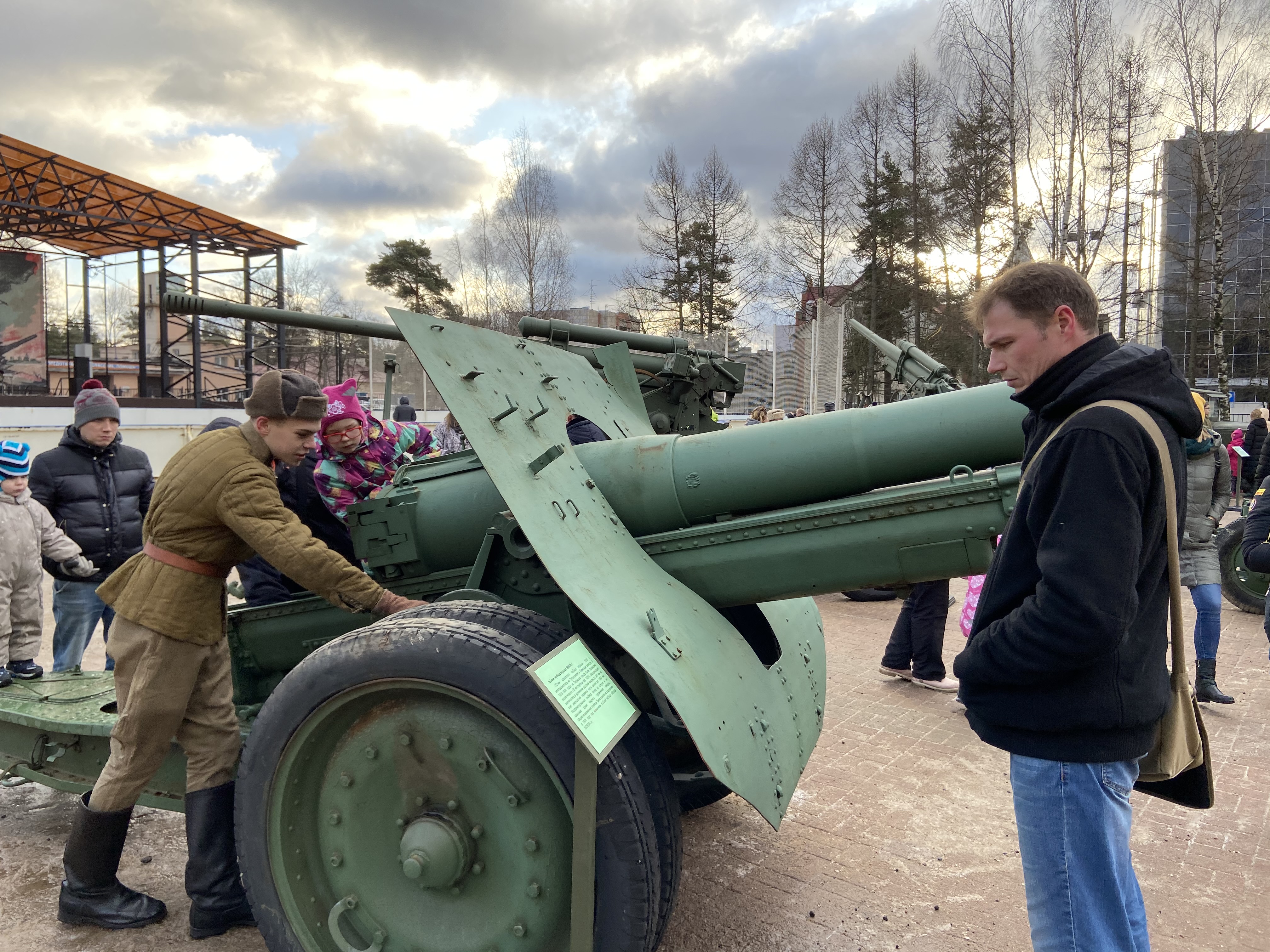 На Юбилейной площади Всеволожска Военно-исторический центр СЗФО, Первая военно-историческая дивизия им. Пионеров-Героев и Администрация Всеволожского муниципального района Ленинградской области организовали выставку военной техники под открытым небом.