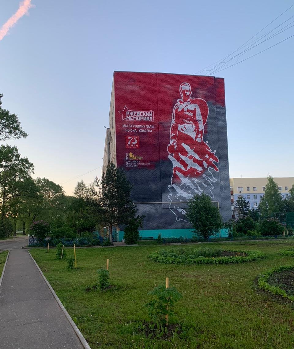 Российское военно-историческое общество продолжает арт-проект граффити. В деревне Хорошево Тверской области создана картина, посвященная 75-летию Великой Победы и предстоящему открытию Ржевского мемориала Советскому солдату.