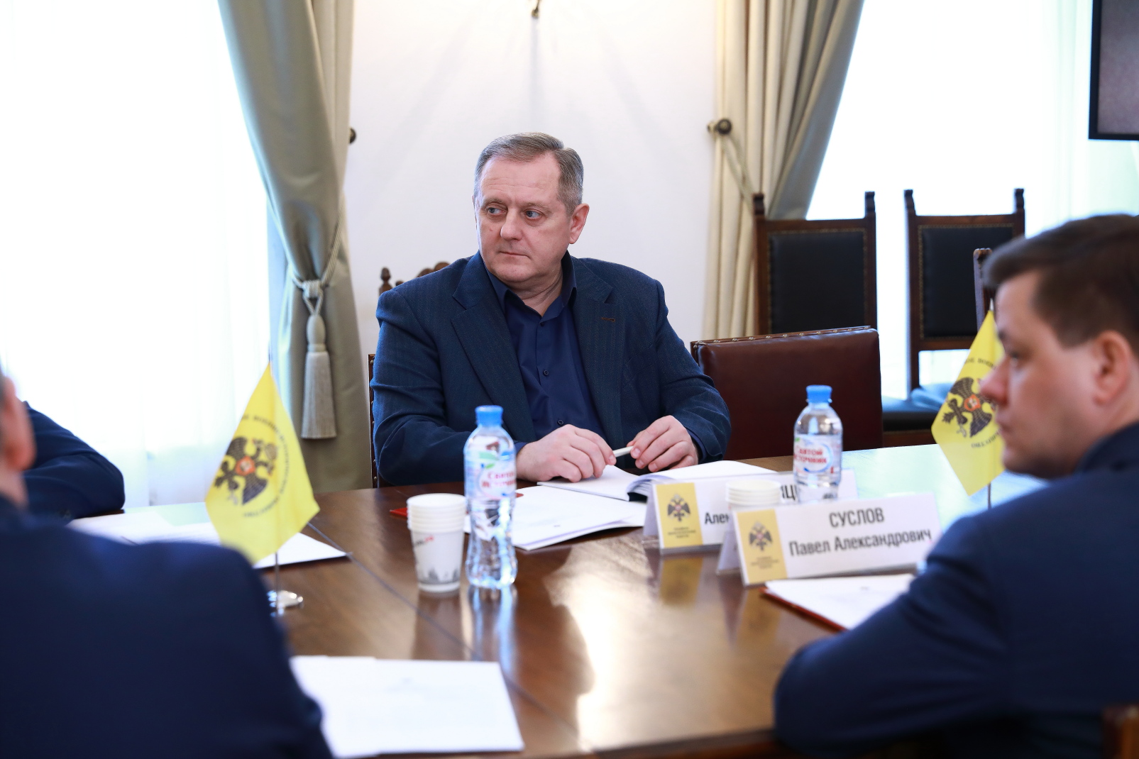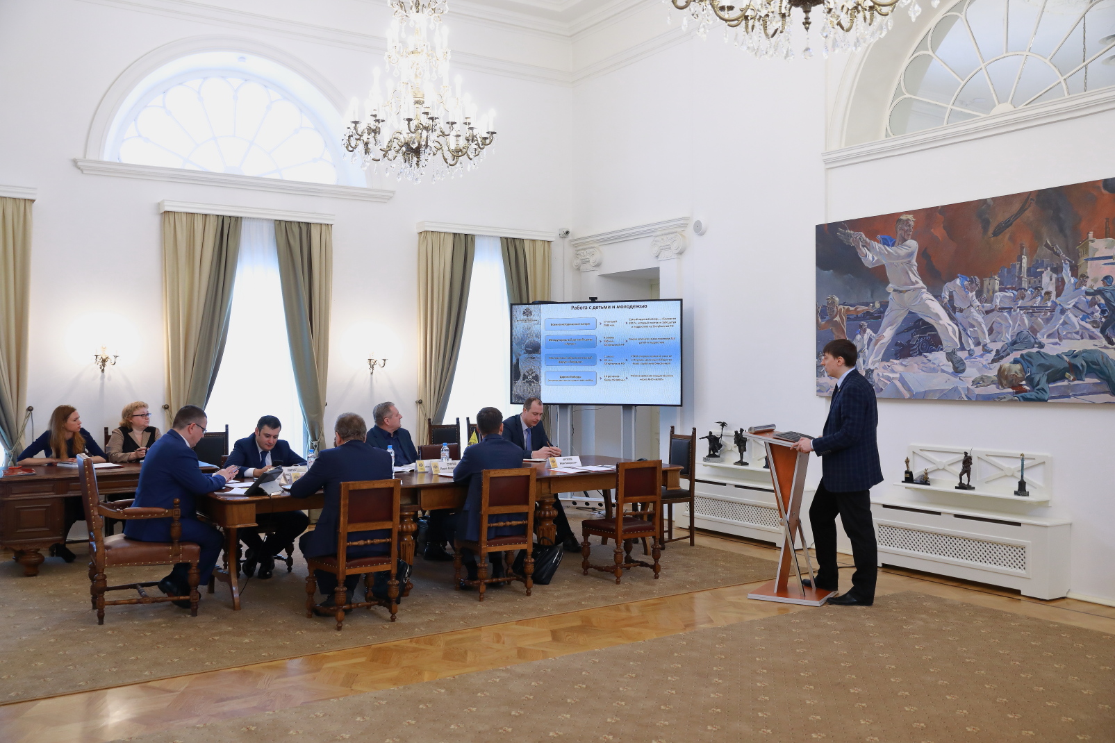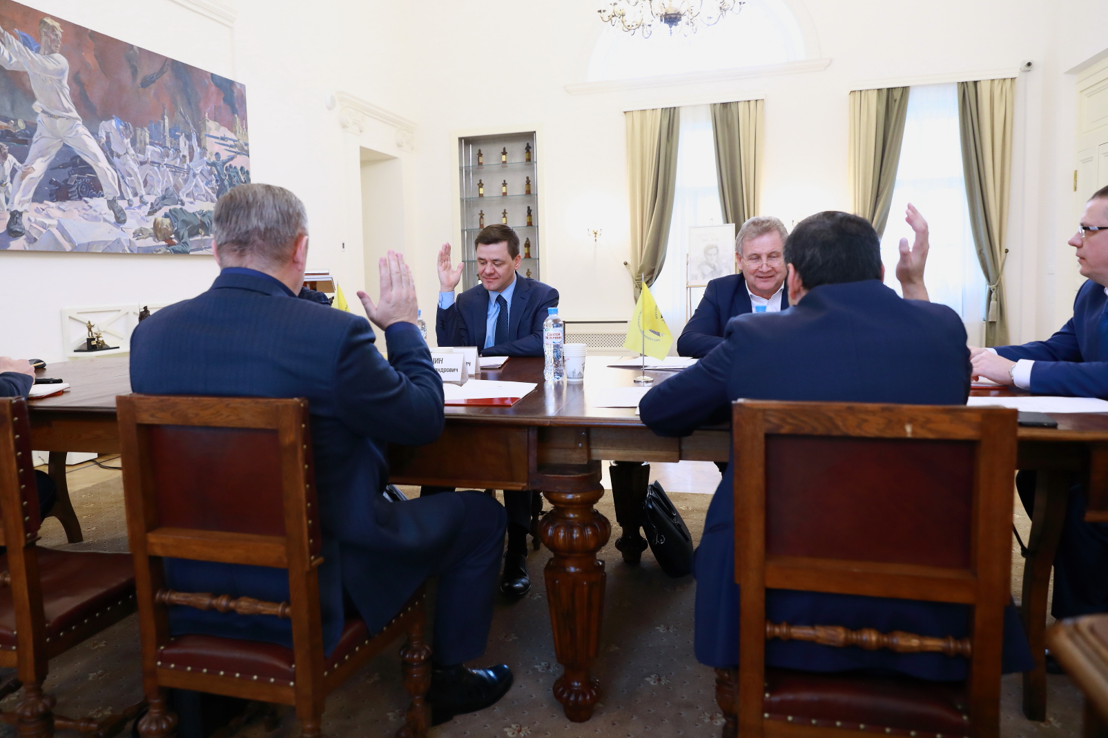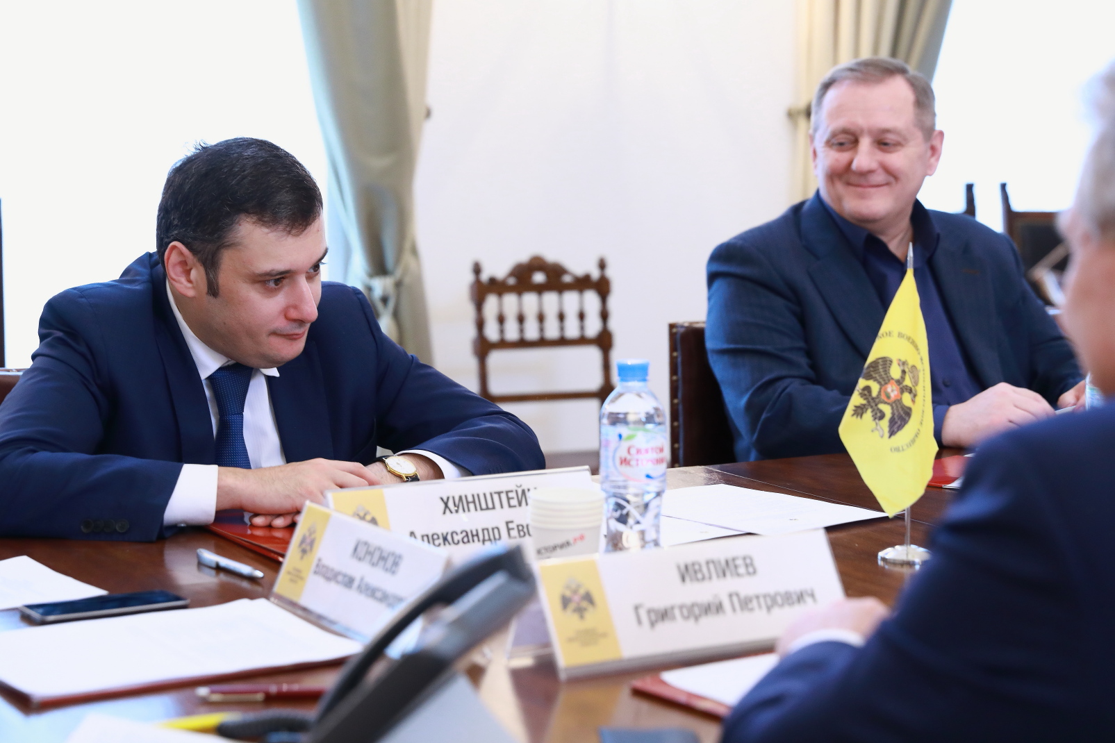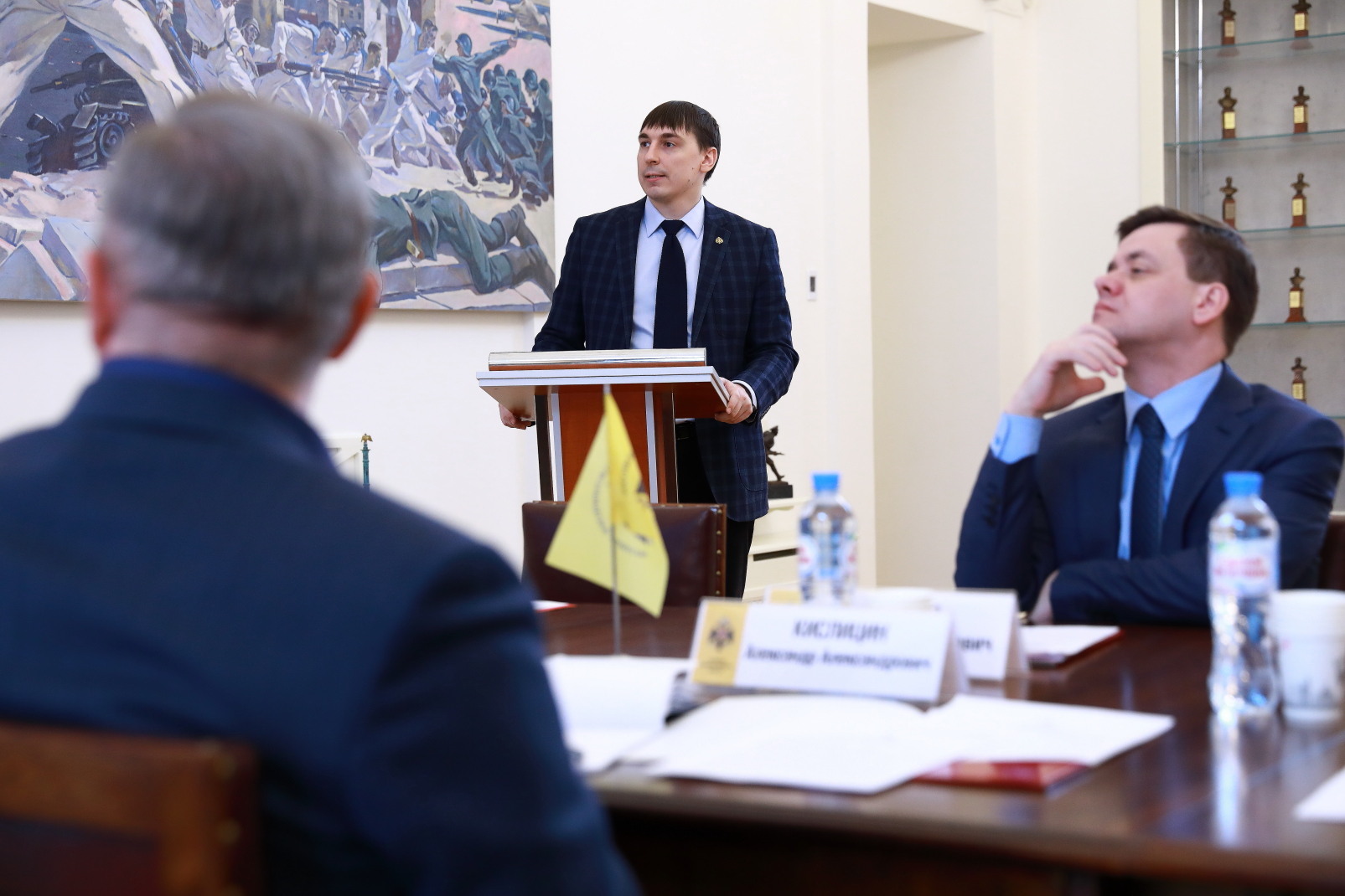 На заседании присутствовали: Исполнительный директор РВИО Владислав Кононов, Руководитель Федеральной службы по интеллектуальной собственности Григорий Ивлиев, Министр культуры Калужской области, Председатель регионального отделения РВИО Павел Суслов, Советник Директора Федеральной службы войск национальной гвардии Российской Федерации Александр Хинштейн, помощник заместителя Генерального директора Уральской горно-металлургической компании Александр Кислицин, Руководитель департамента по работе с государственными и общественными организациями РВИО Иван Архипов.