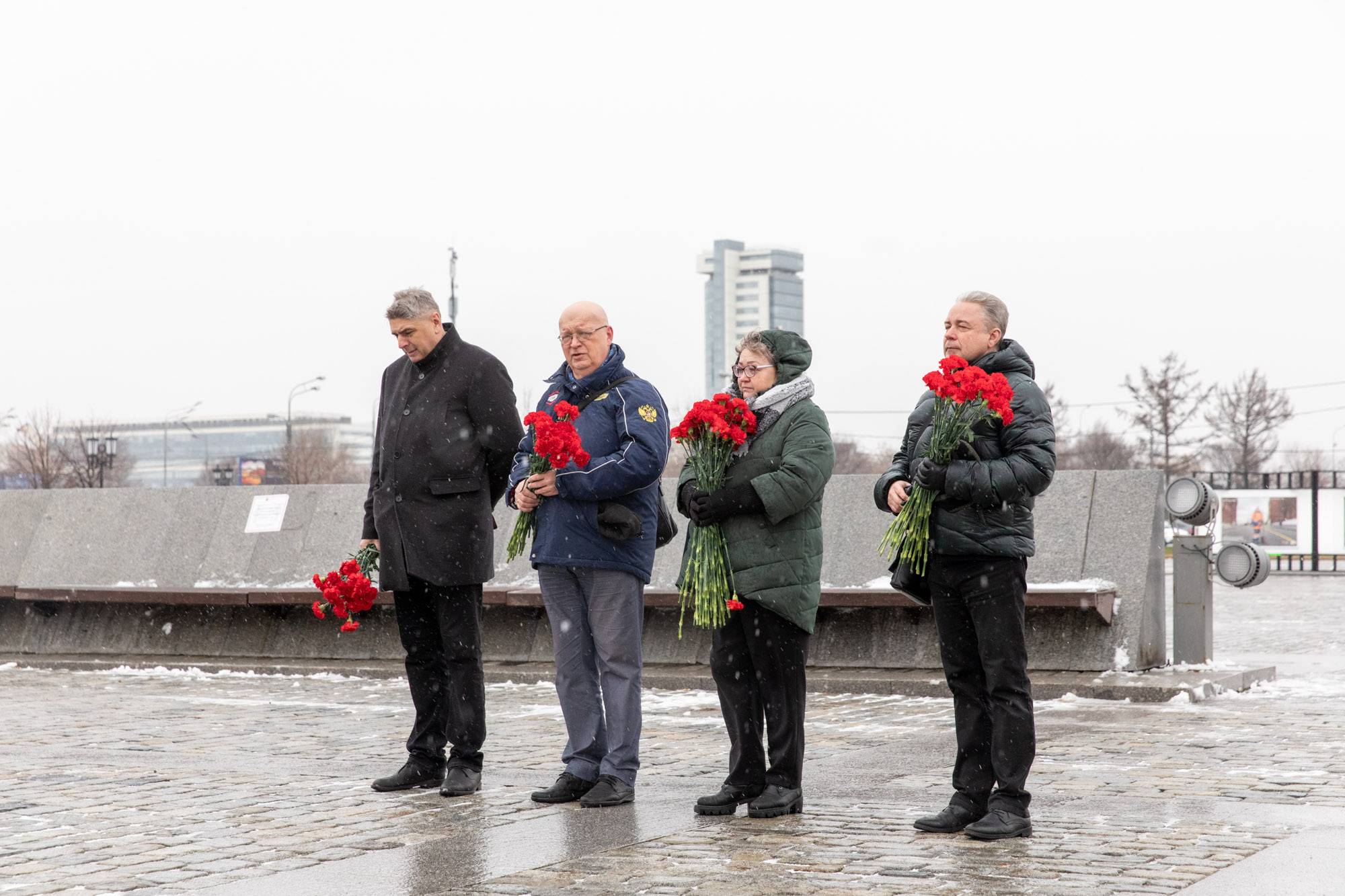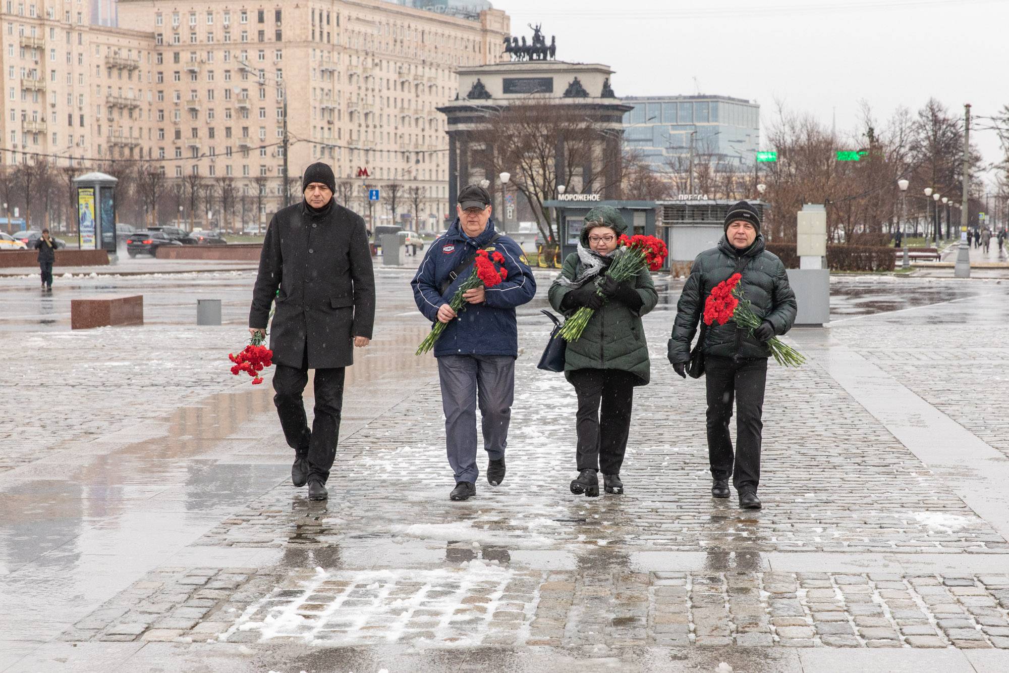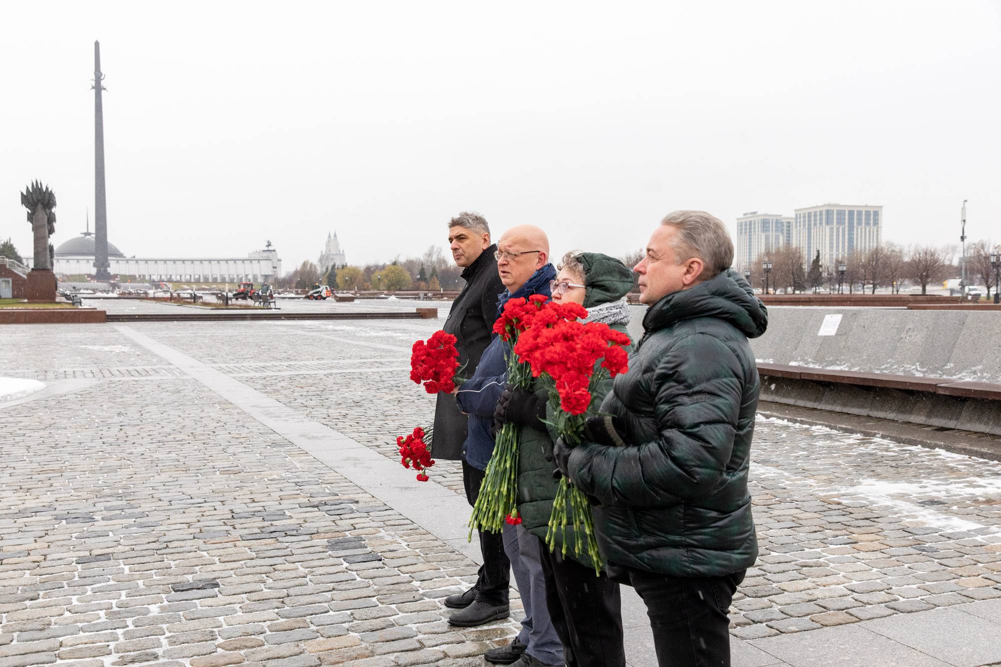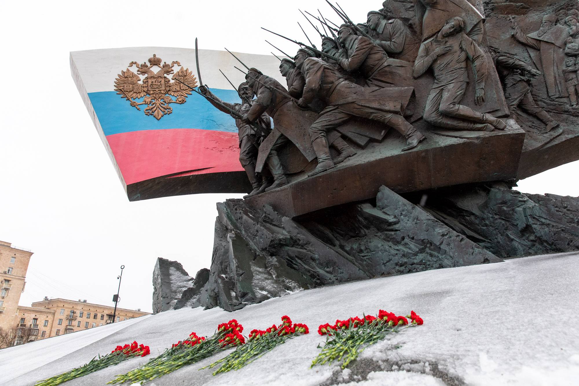 Участники акции возложили цветы и почтили память русских воинов минутой молчания. Мероприятие прошло на Поклонной горе. Красные гвоздики легли к подножию скульптурной композиции Героям Первой мировой войны.