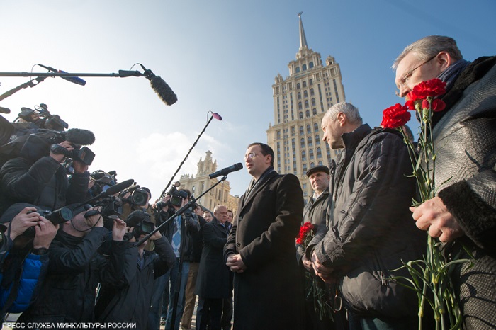 Церемония прошла на территории гостиничного комплекса "Украина". По словам министра культуры РФ – председателя Российского военно-исторического общества Владимира Мединского, творчество Тараса Шевченко сближает Украину и Россию, поскольку тот был двуязычным поэтом. "Если бы он узнал о сегодняшних событиях, он бы сильно удивился", - убежден министр.
