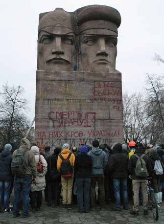 22 февраля 2014 года в городе Стрый Львовской области был демонтирован памятник советским солдатам, погибшим при освобождении Украины в годы Второй мировой войны. Скульптура, которая изображала солдата с ребенком на руках, считалась духовным центром города, именно к ней приходили ветераны 9 мая.
