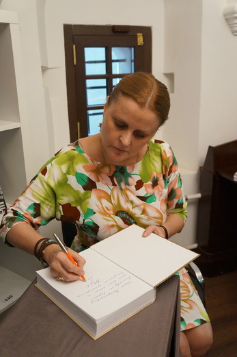 После беседы в Стрелецких палатах состоялась автограф-сессия с подписанием книги «Записки из чемодана. Тайные дневники первого Председателя КГБ, найденные через 25 лет после его смерти».