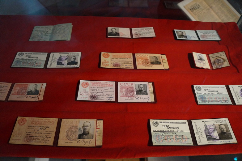 На выставке «Иван Серов. Человек эпохи» представлены подлинные документы – расписки, ведомости, рукописи дневниковых записей, награды и личные вещи первого председателя КГБ СССР Ивана Александровича Серова. Среди экспонатов: любимые шахматы, печатная машинка, удостоверения и многое другое.