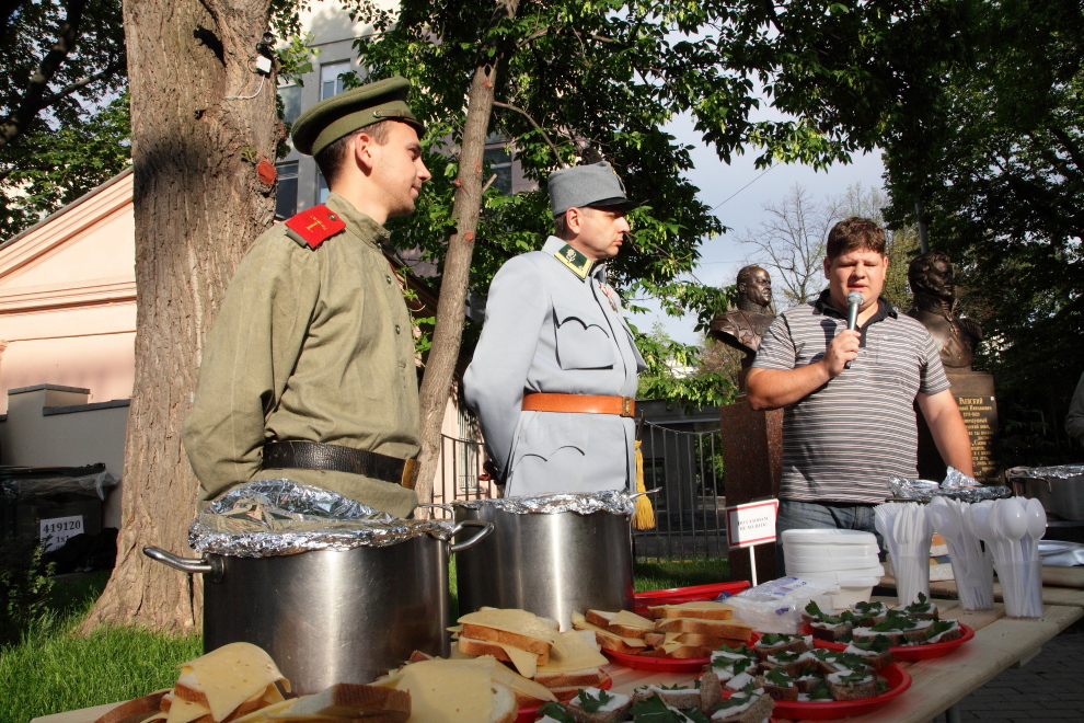 До начала официальной части в «Сквере Победителей» проходил кулинарный мастер-класс, посвящённый солдатской кухне времён Первой мировой. Все желающие смогли не только услышать о самых популярных рецептах военной кухни и продуктовых «наборах» русской, французской и немецкой армий, но и попробовать эти блюда.